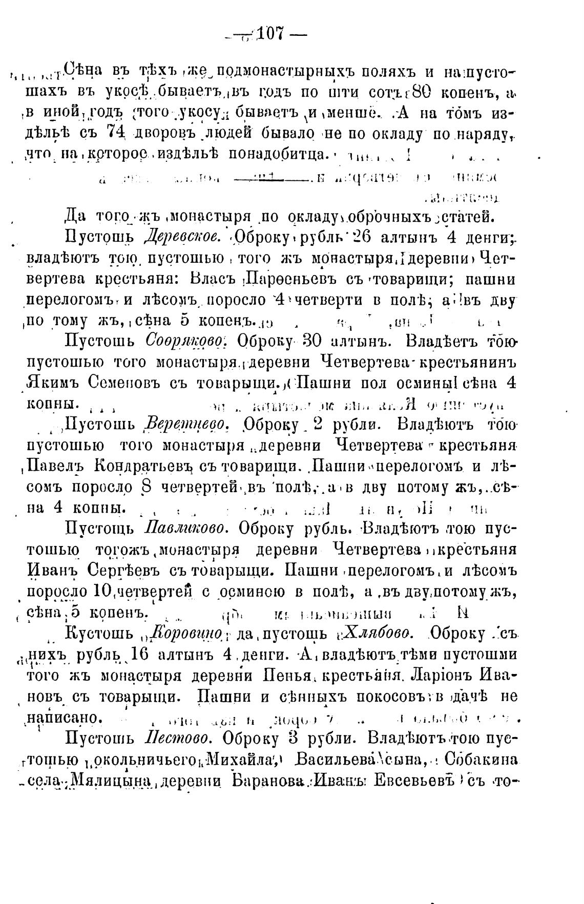 владфютъ пустошью того жъ монастыря, 1 деревни» Чет-