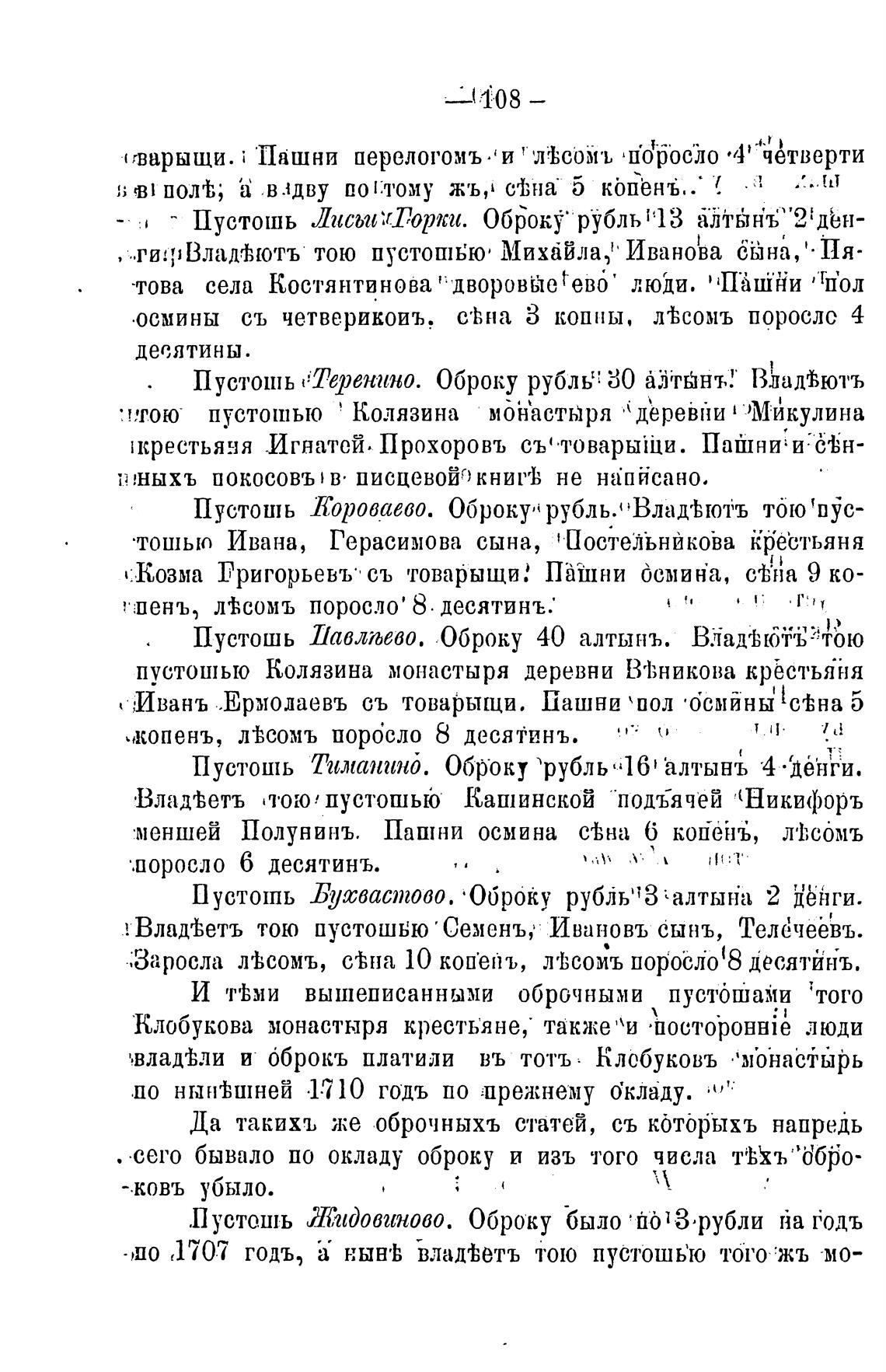 Пустошь Тимапгшб. Оброку рубль "16' аЛТЫНЪ 4 •'дейги.