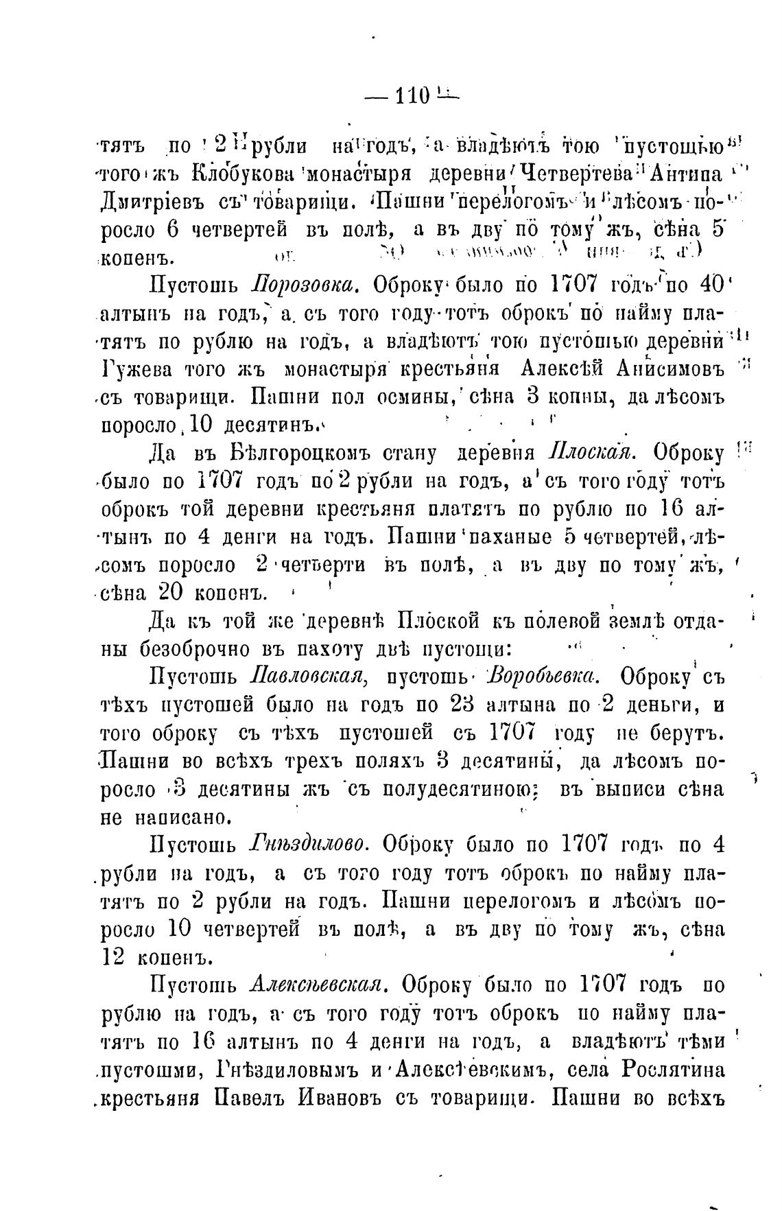 Пустошь Порозовка. Оброку было по 1707 го'дъ•'по 40'