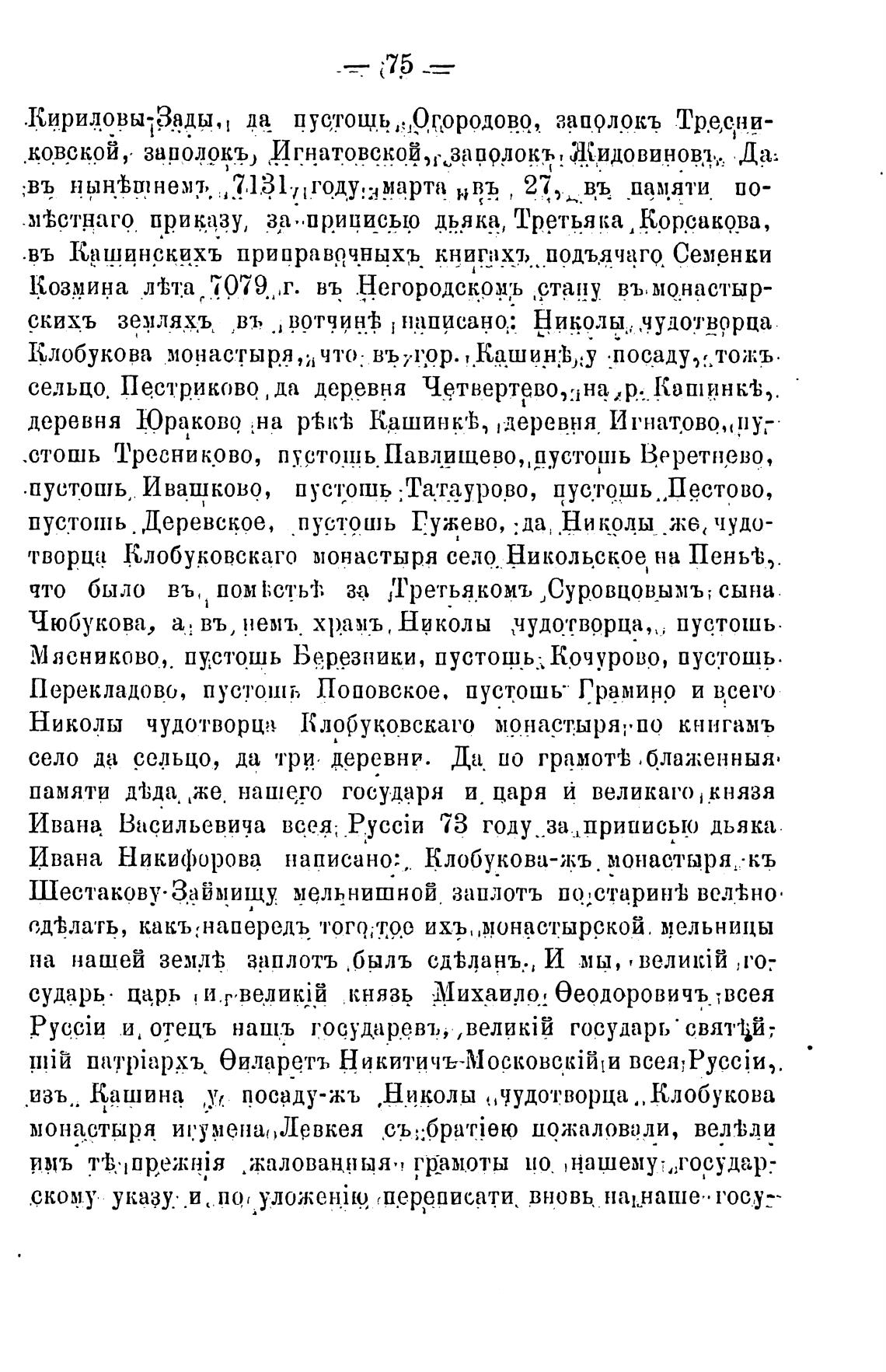 .изъ., Кашина ,у,. посаду-жъ Диколы „чудотворца Клобукова