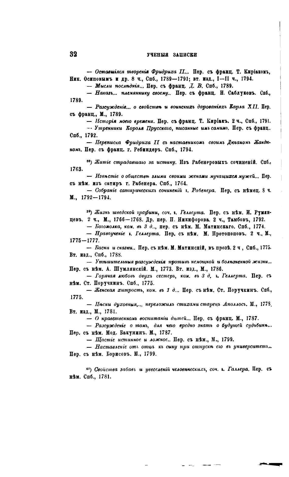 — Басни и сказки.. Пер. съ нћм. М. въ проз±. 2 ч , Спб., 1775.