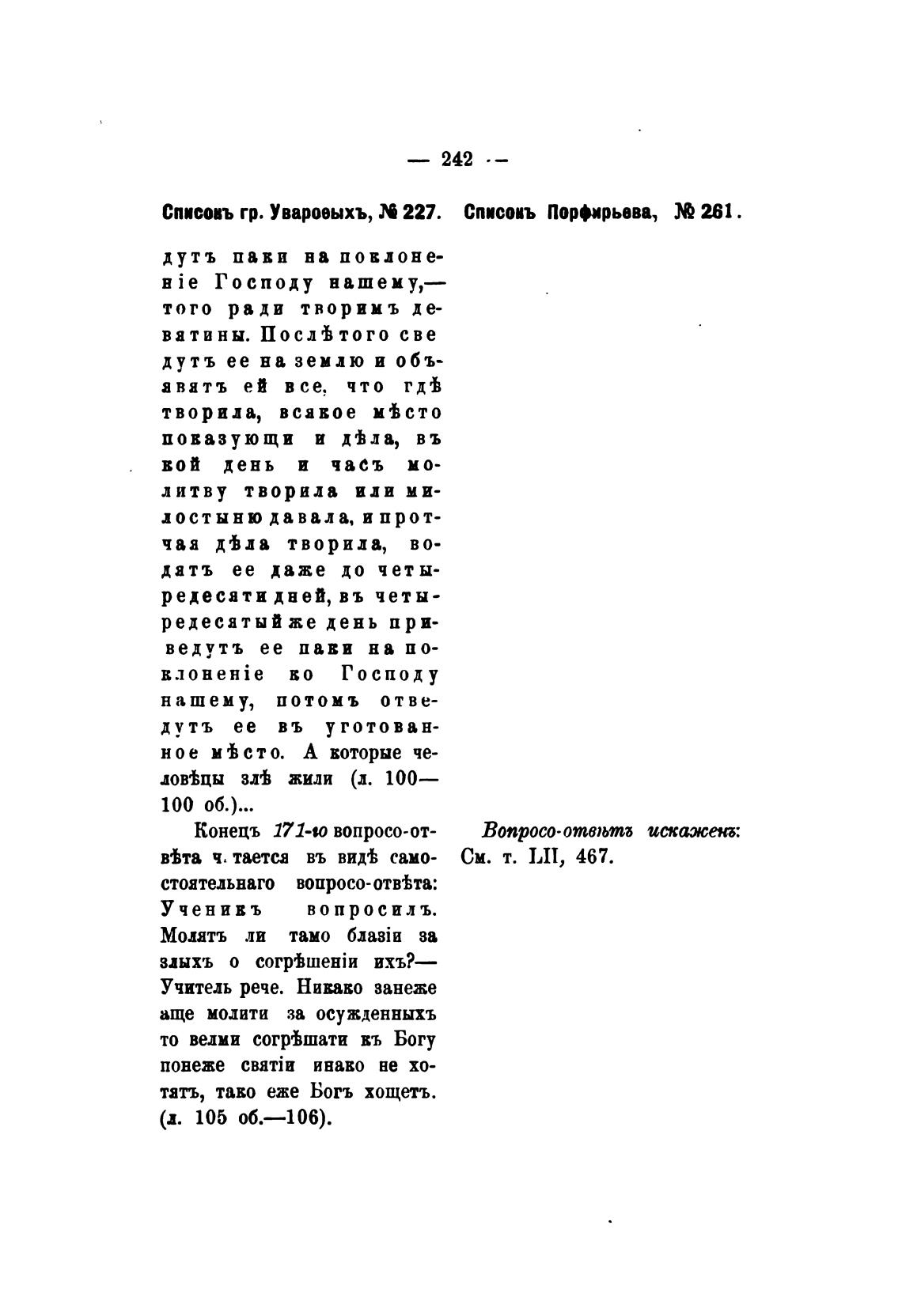 Списовъ гр. Увароеыхъ, 227. Списоиъ Порфирьева, 261.