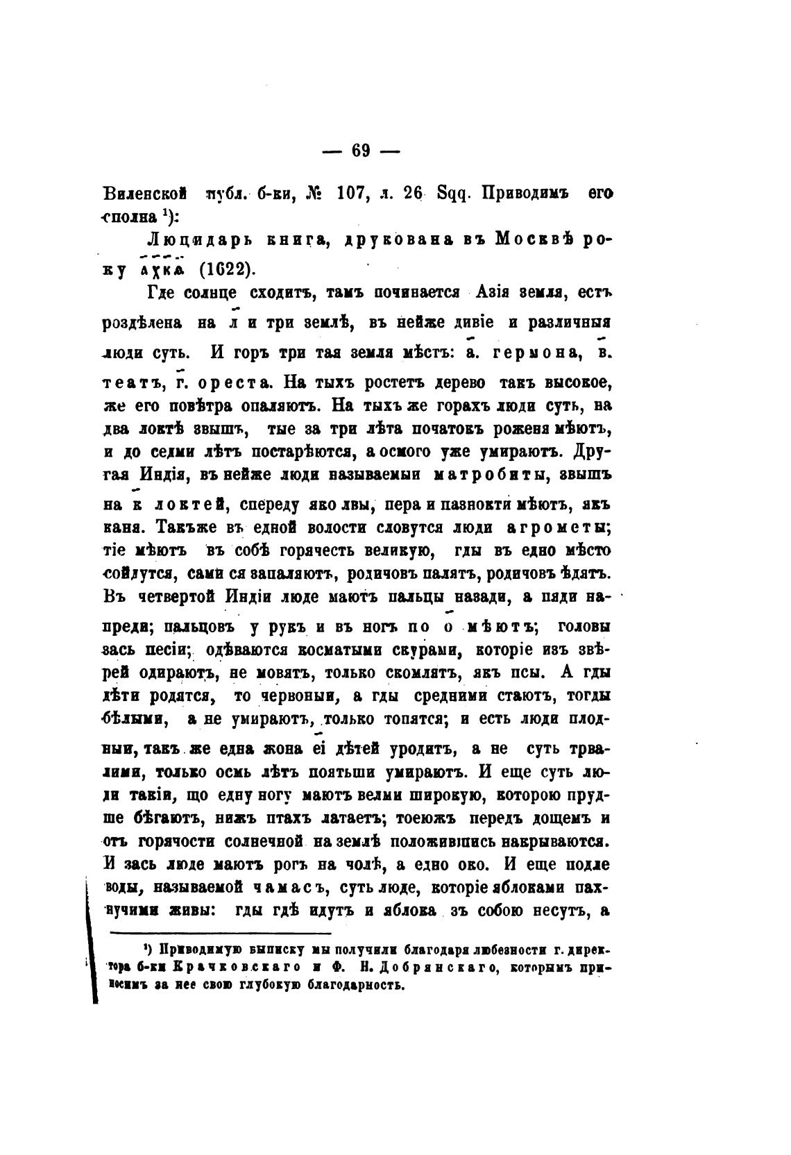 ВидевскоИ публ. б-ви, 107, л. 26 Sqq. Приводимъ его