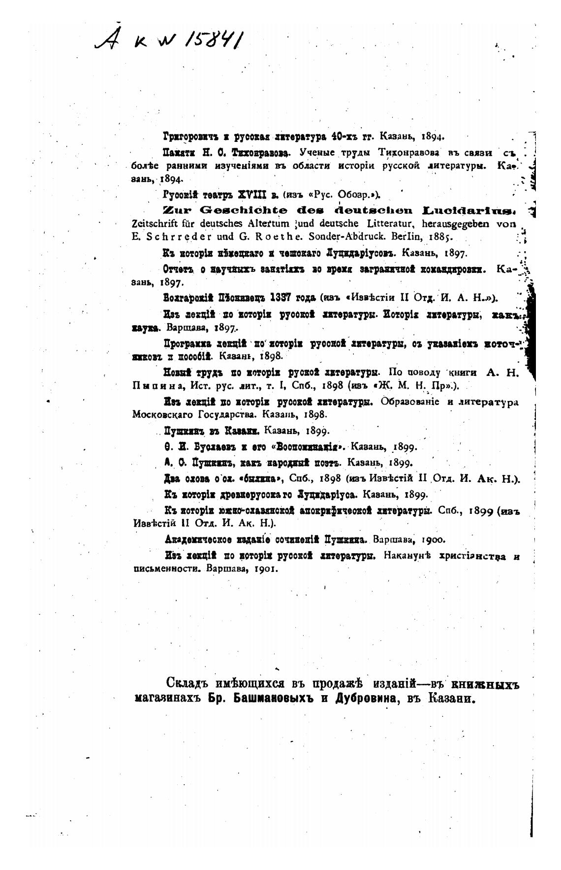 Ез zropiz древверуоохаго Зуцххвр{уаа. Казань, 1899.