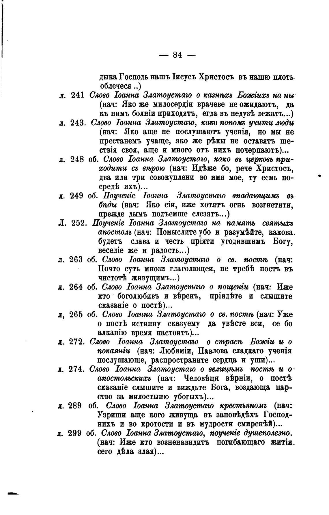 л. 249 об. Поучайе 1оанна Златоустао впадающим Вб