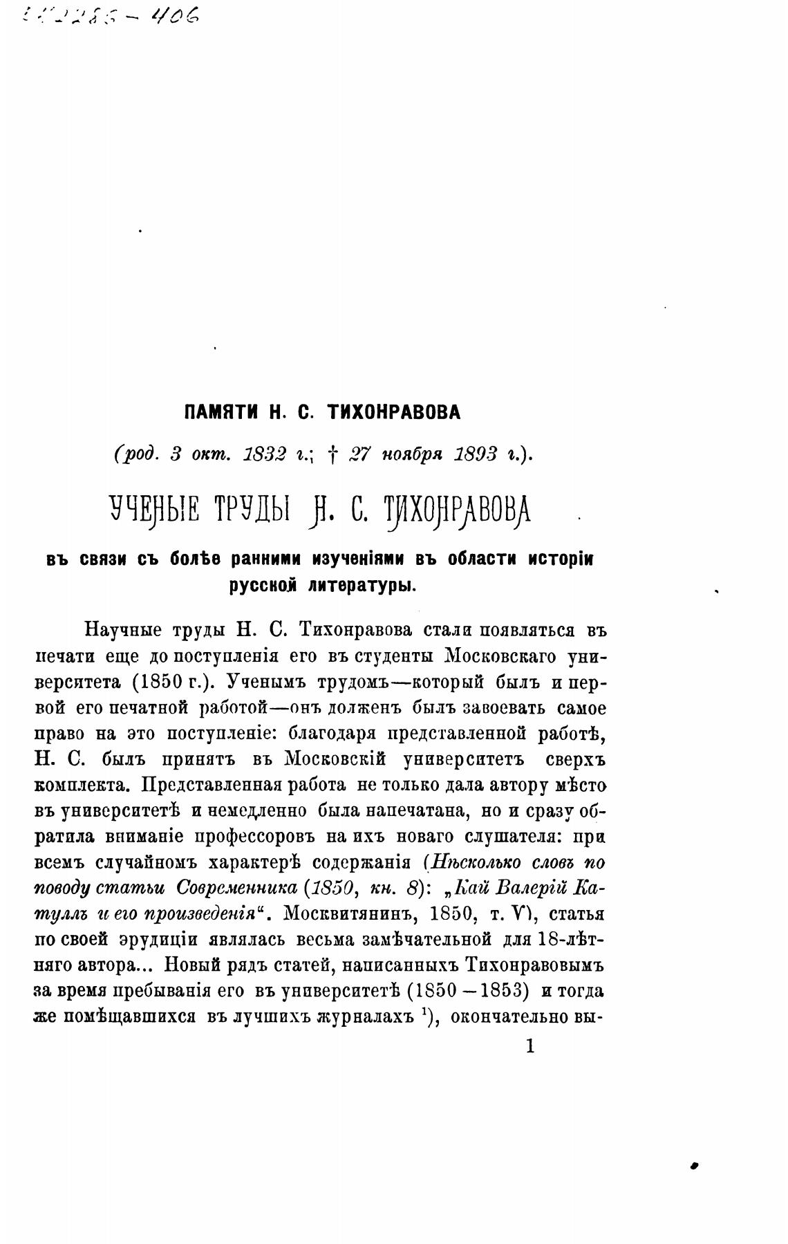 наго автора... Новый рядъ статей, написанны.хъ Тихонравовымъ