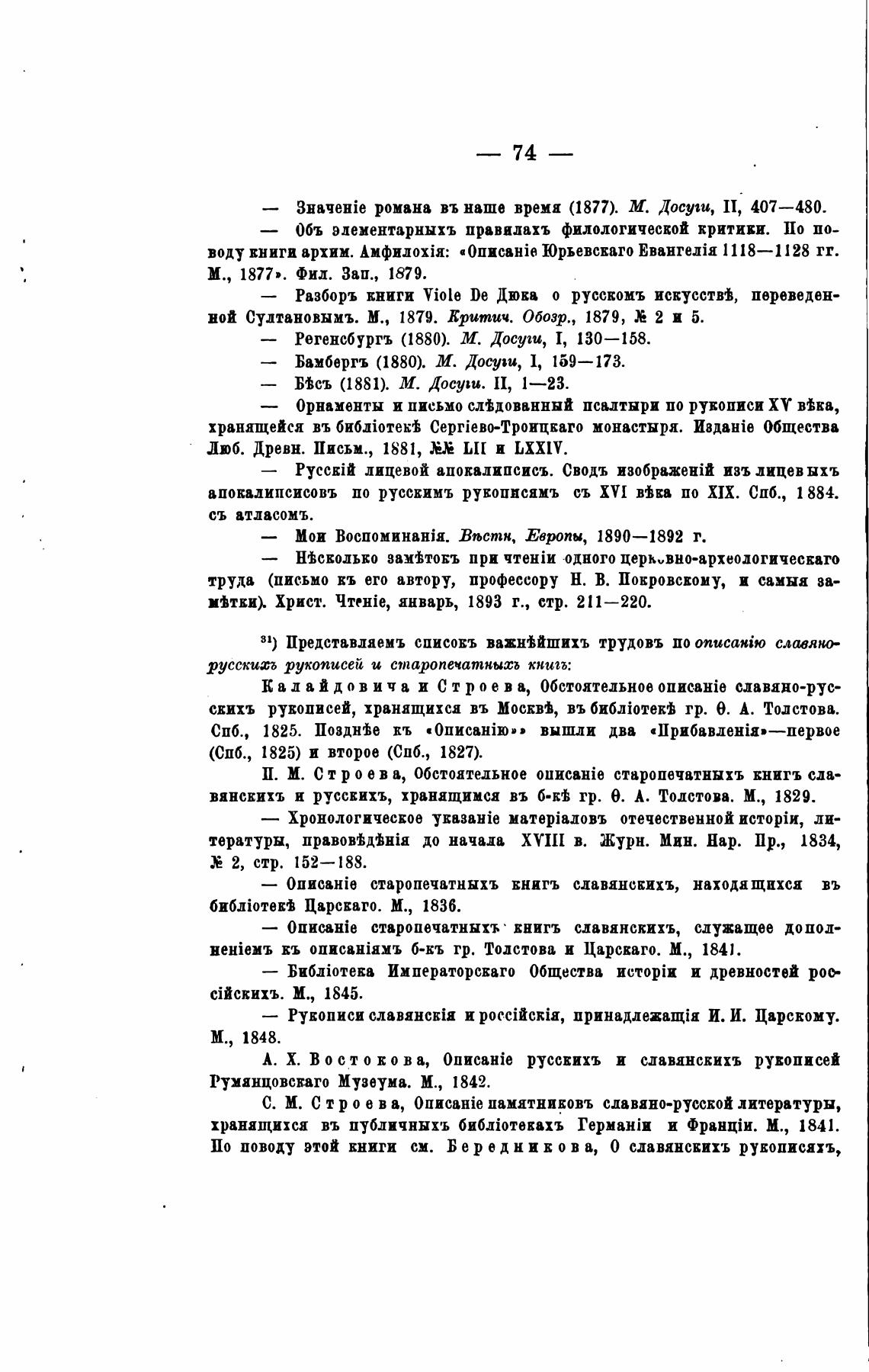 31) Представляемъ СПИСОЕЪ важнишихъ трудовъ по описатю славян.Ф