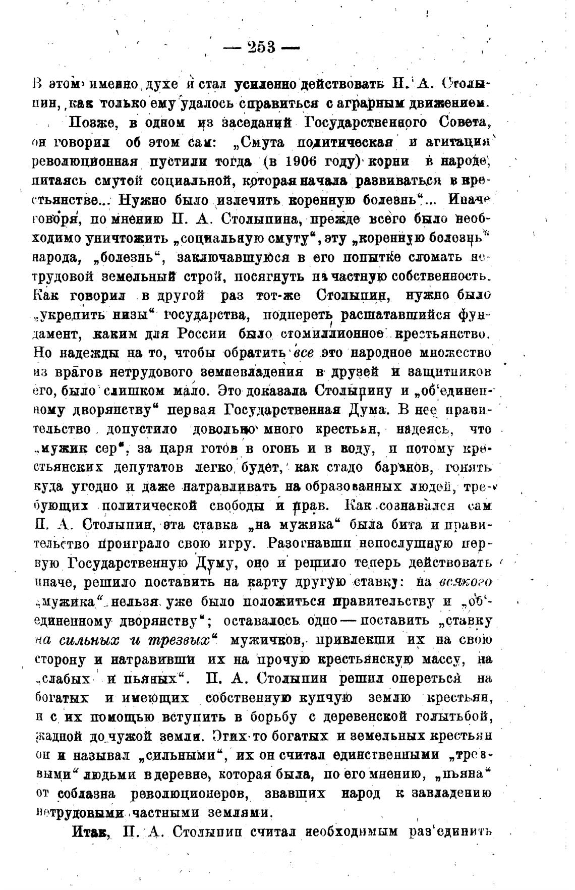 П. А. Стодыпип, вта ставка „на мужика“ была бита и прави-