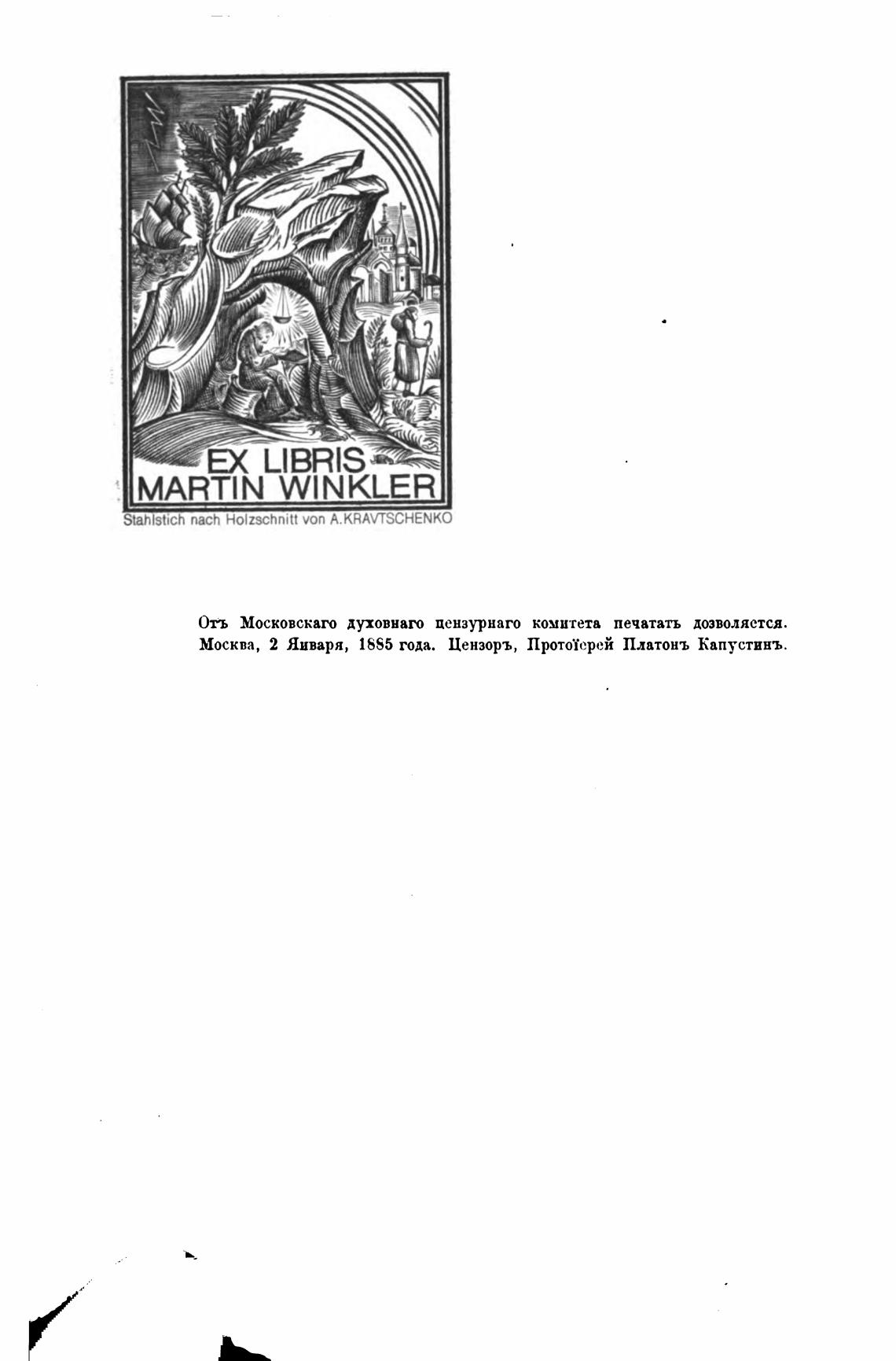 Москва, 2 Января, 1SS5 года. Цензоръ, Прототерей Платонъ Капустинъ.