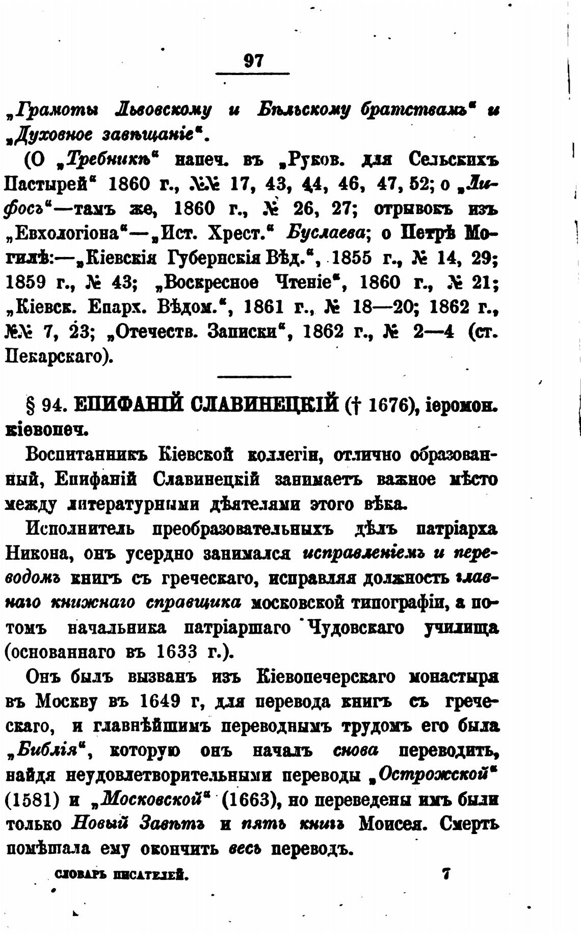 S 94. СЛАВИНЕЩЙ (t 1676), iep0M0H.
