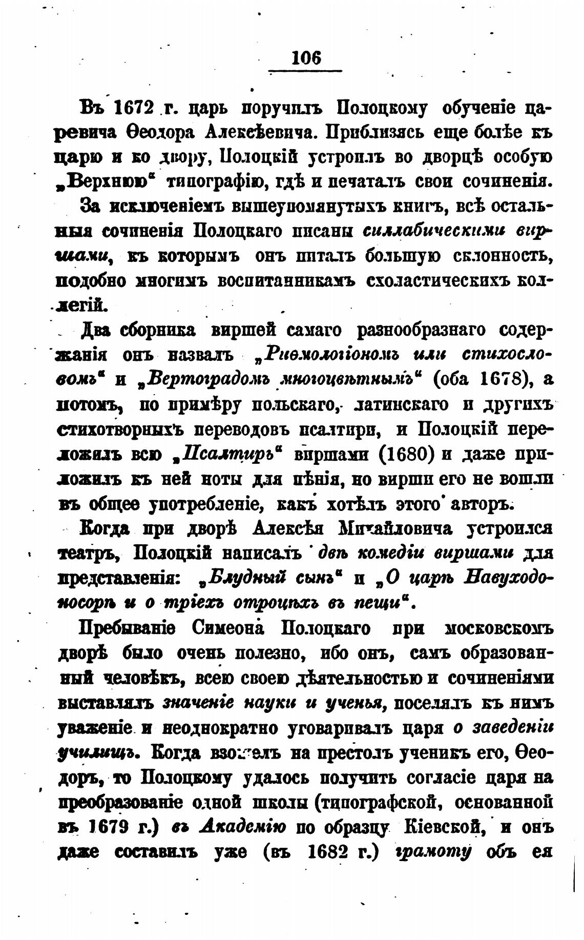 Въ 1672 г. царь поручил Полоцкому обученје ца-