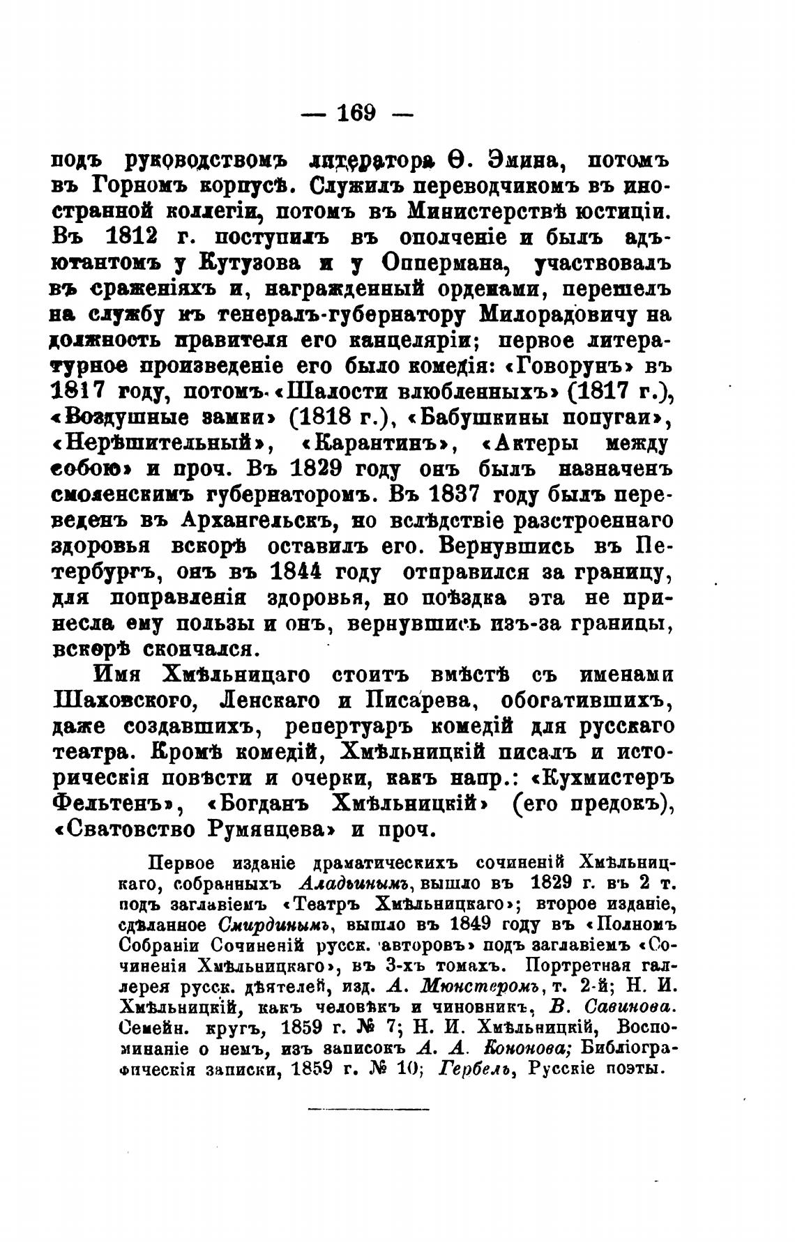 подъ «Театръ Химьницкаго»; второе