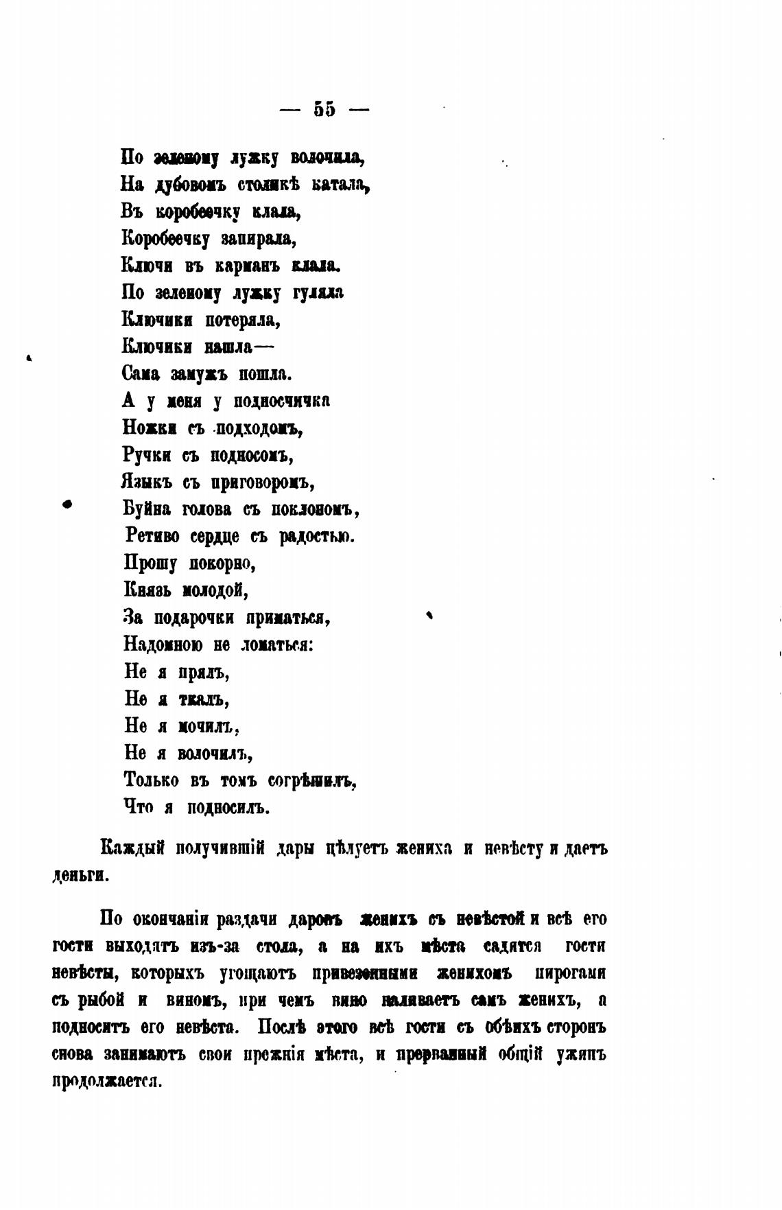 Каждый получивпйй дары цтлуеть жениха и нев•Ьсту и даетъ