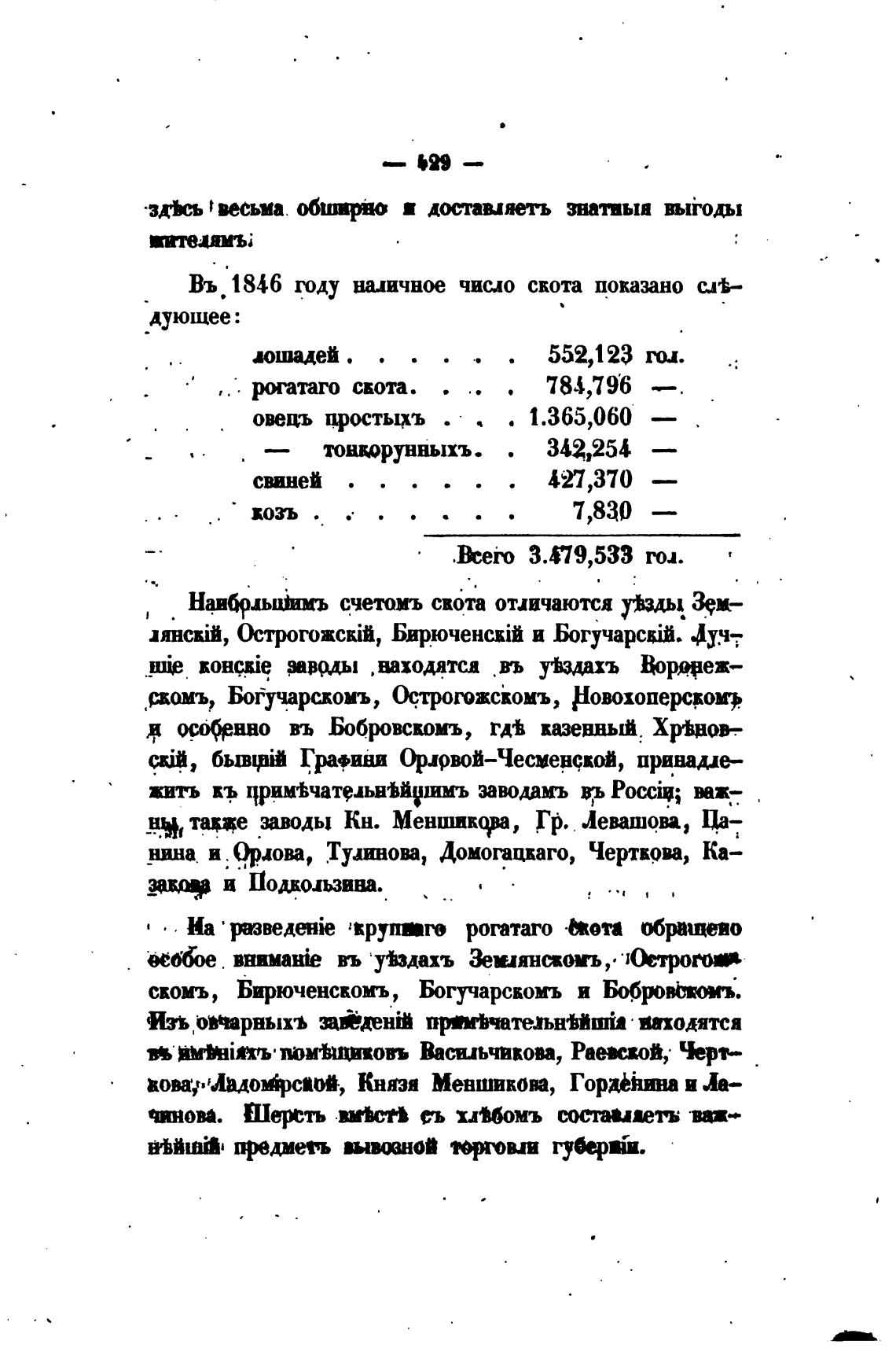 Въ 1846 году число скота показано с..В--