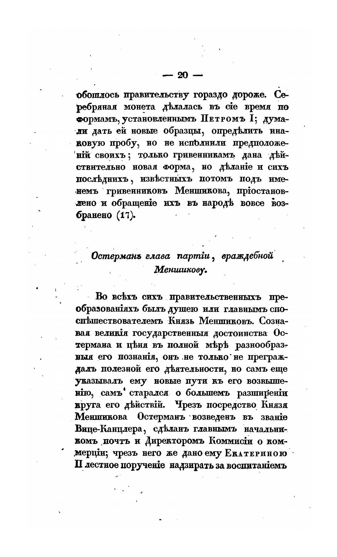 .немъ гривенниковъ Меншикова, npiocTaH0B-