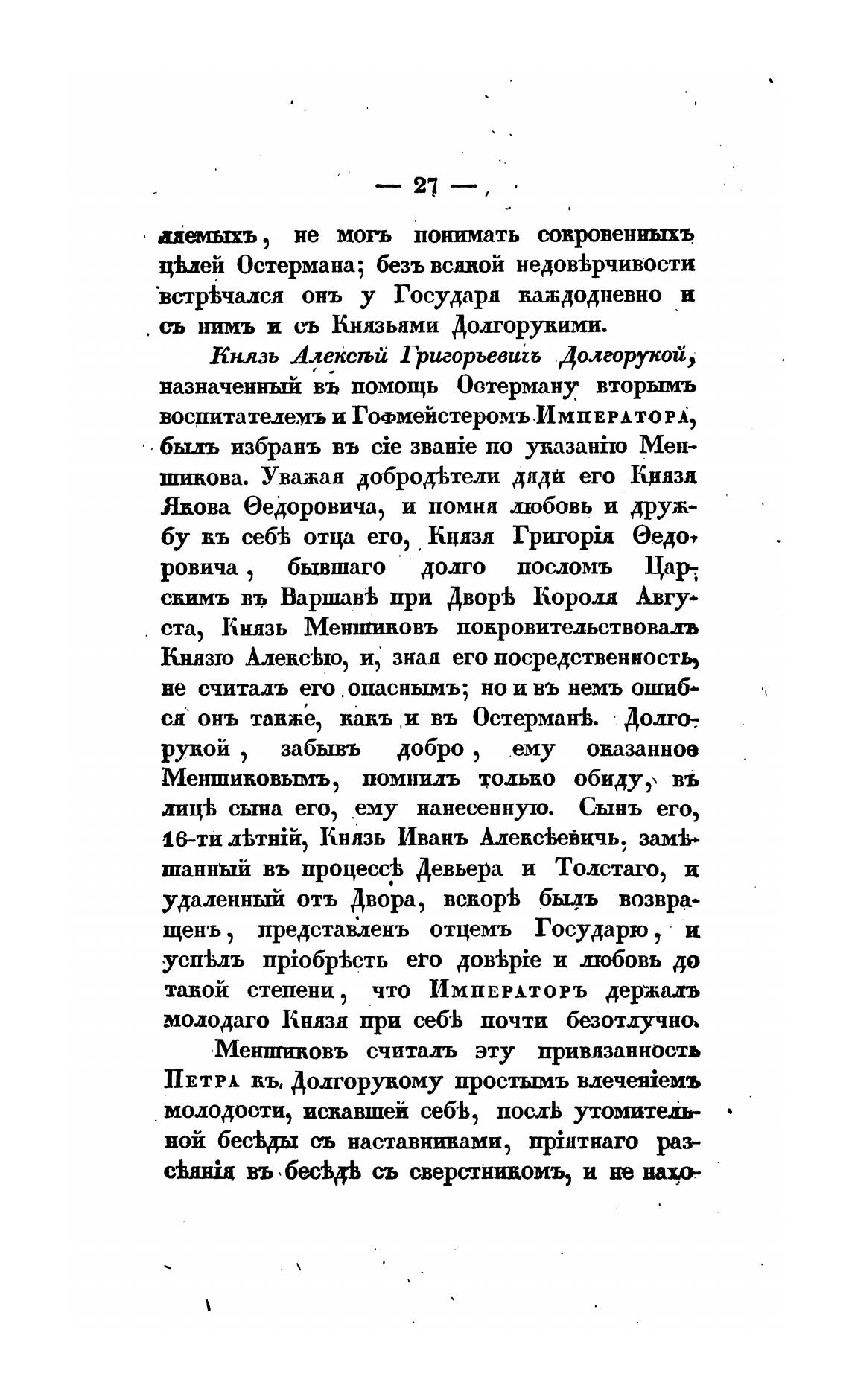 ПЕТРА пь Долгорукому простымъ