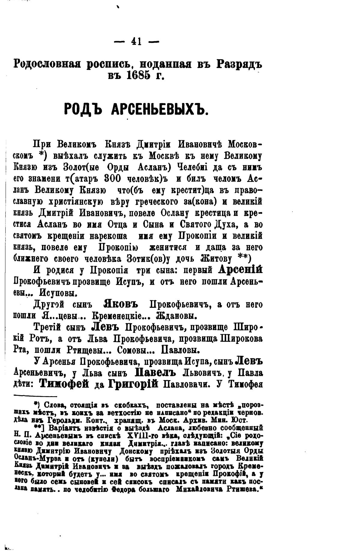 Прокофьевичъ прозвище Исупъ, и отъ него пошли Арсень-
