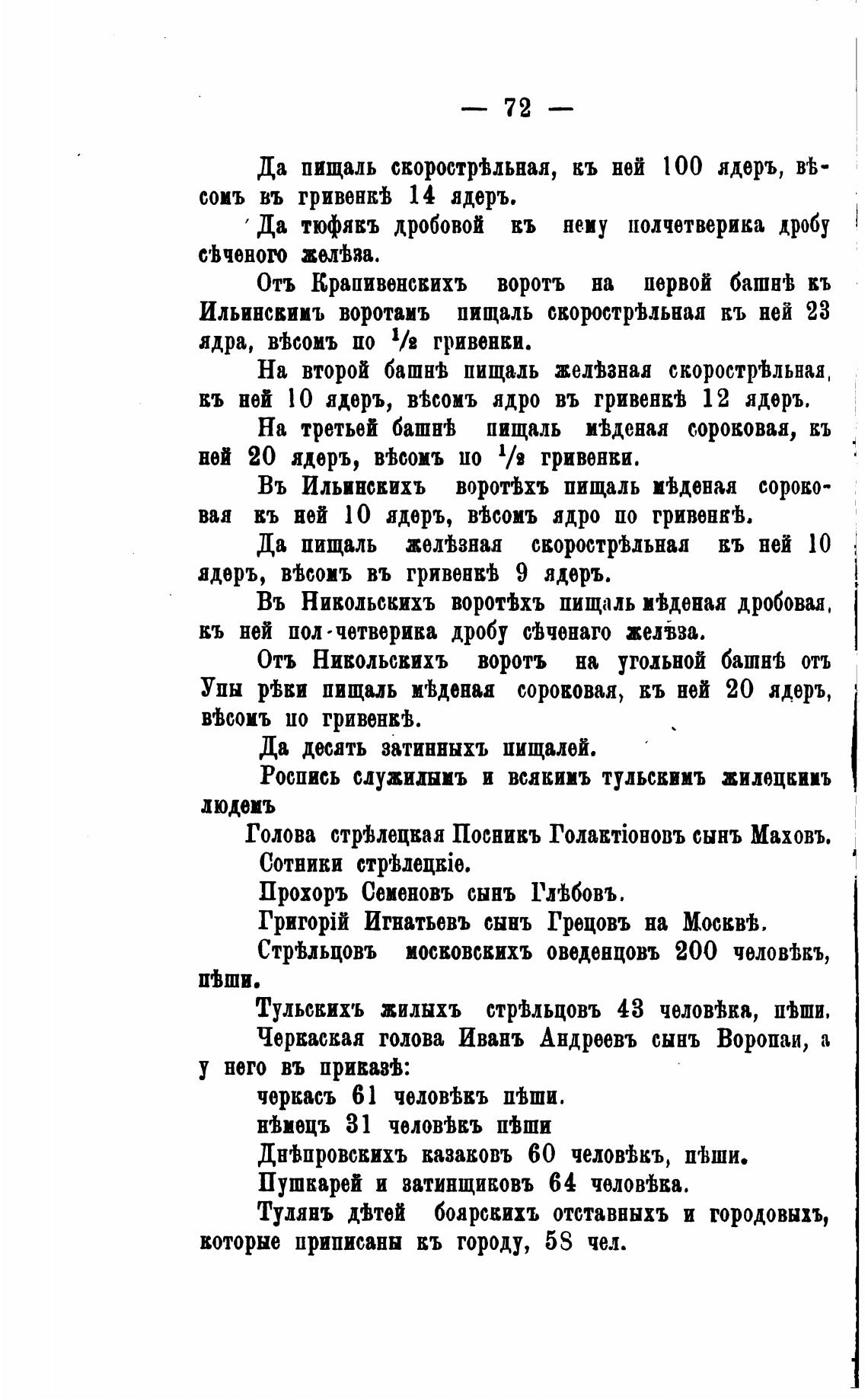 Пушкарей и ватинщивовъ 64 чолов'ђва.