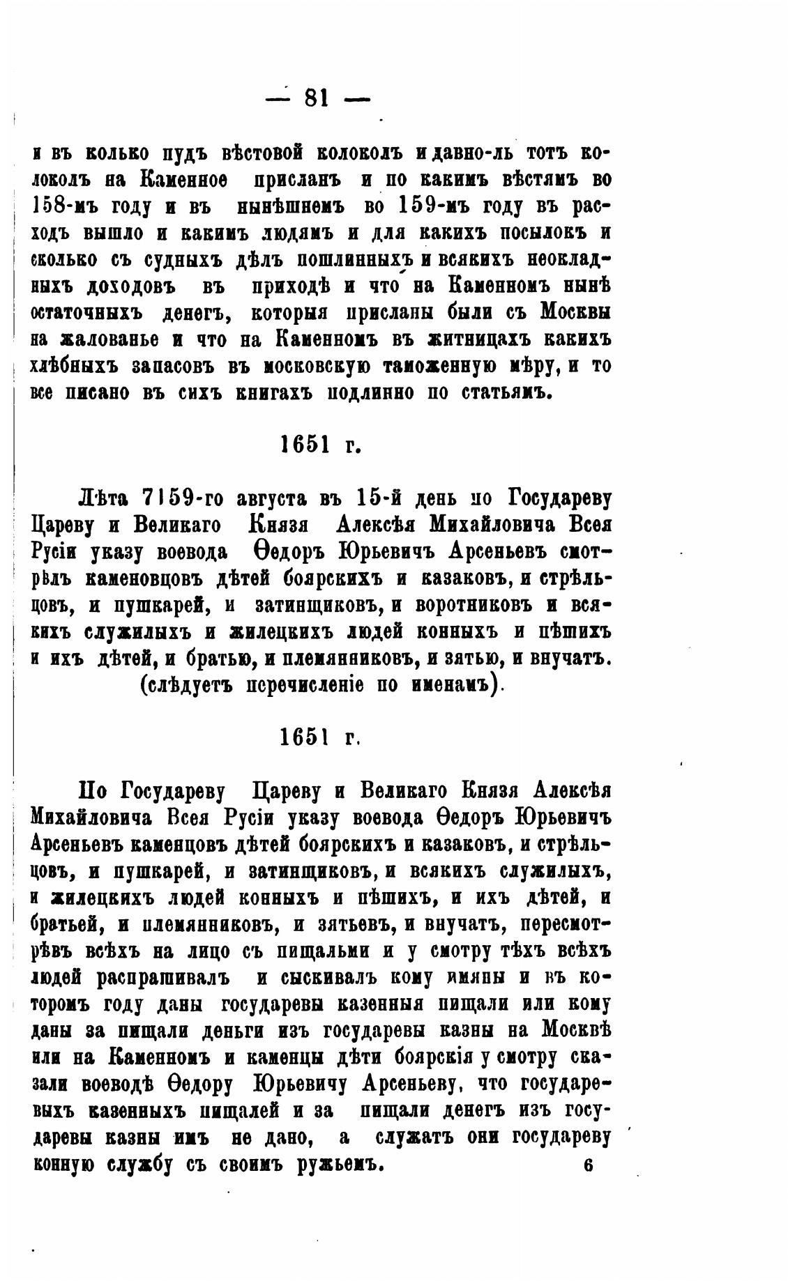 Арсеньевъ каменцовъ джей боярскихъ и казаковъ, и стрјль-