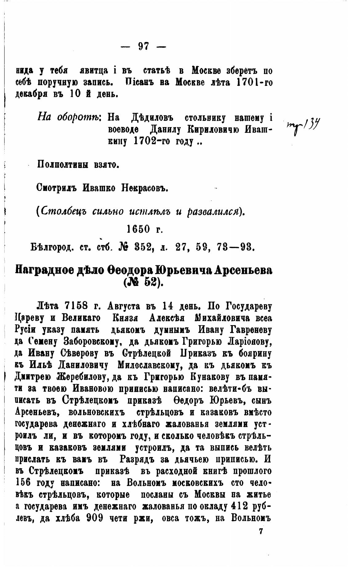 да Ивану Иверову въ Стргђлецкой Ириказъ въ боярину