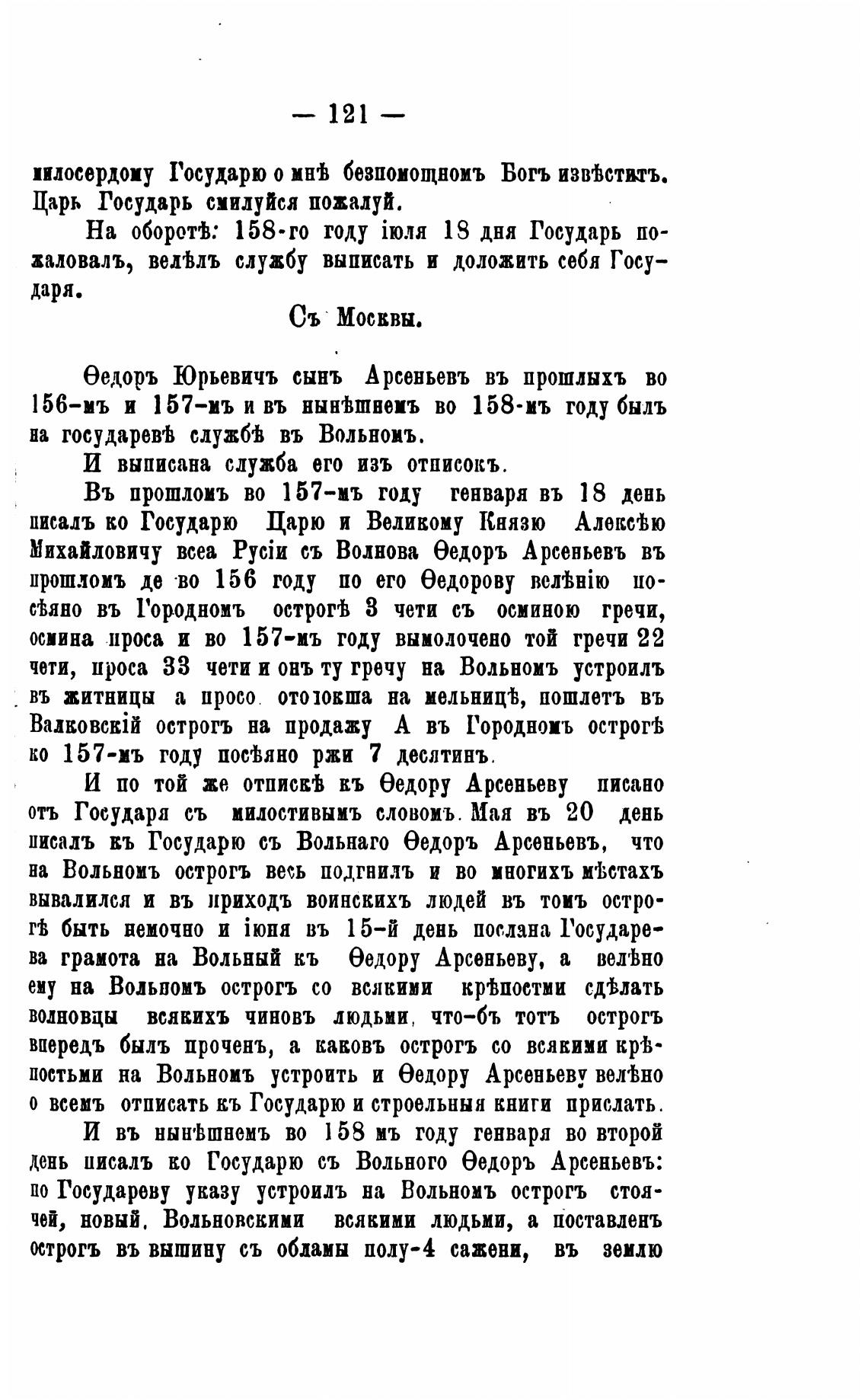 день иисалъ во Государю съ Вольного бедоръ Арсеньевъ: