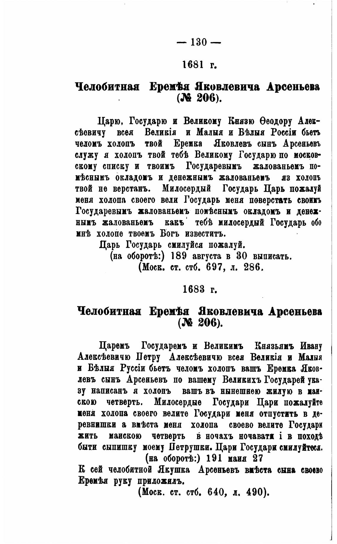 Челобитнаа ЕреМя Яковлевича Арсеньева