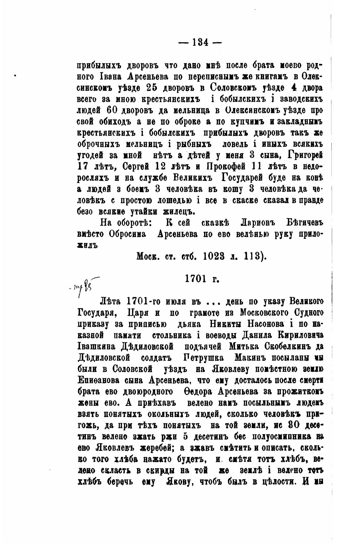 ного 1вана Арсеньева по переписнымъ же книгамъ в Одев-