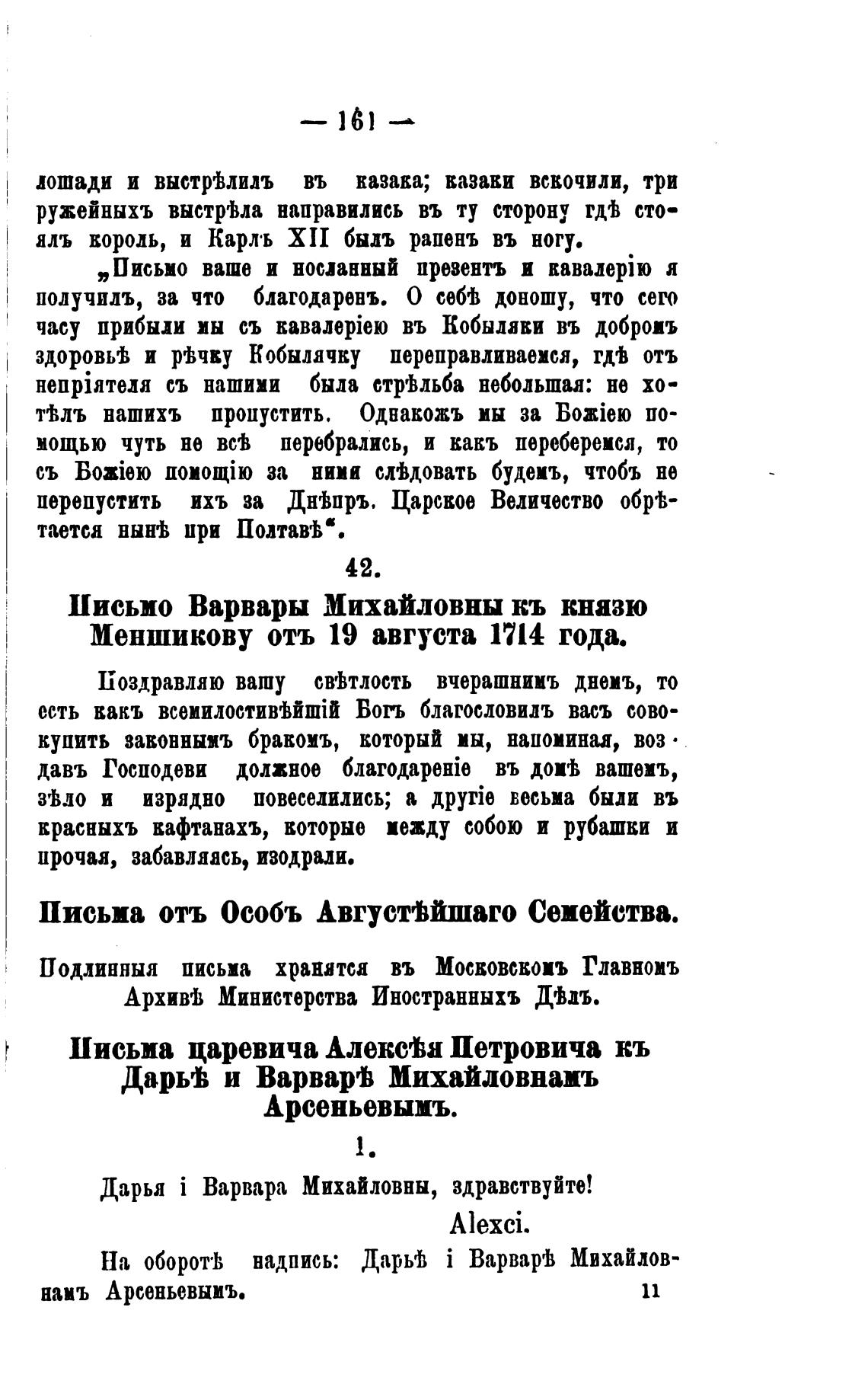 Подлинныя письма хранятса въ МОСКОВСЕОИЪ Главномъ