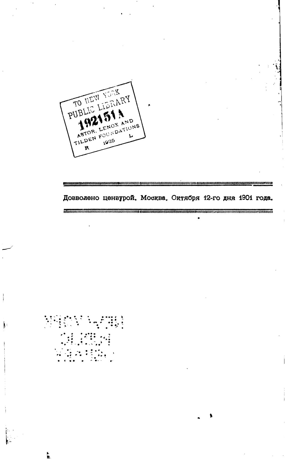Довволено ценвурой. Москва. Октября 12-го дня 1904 года.