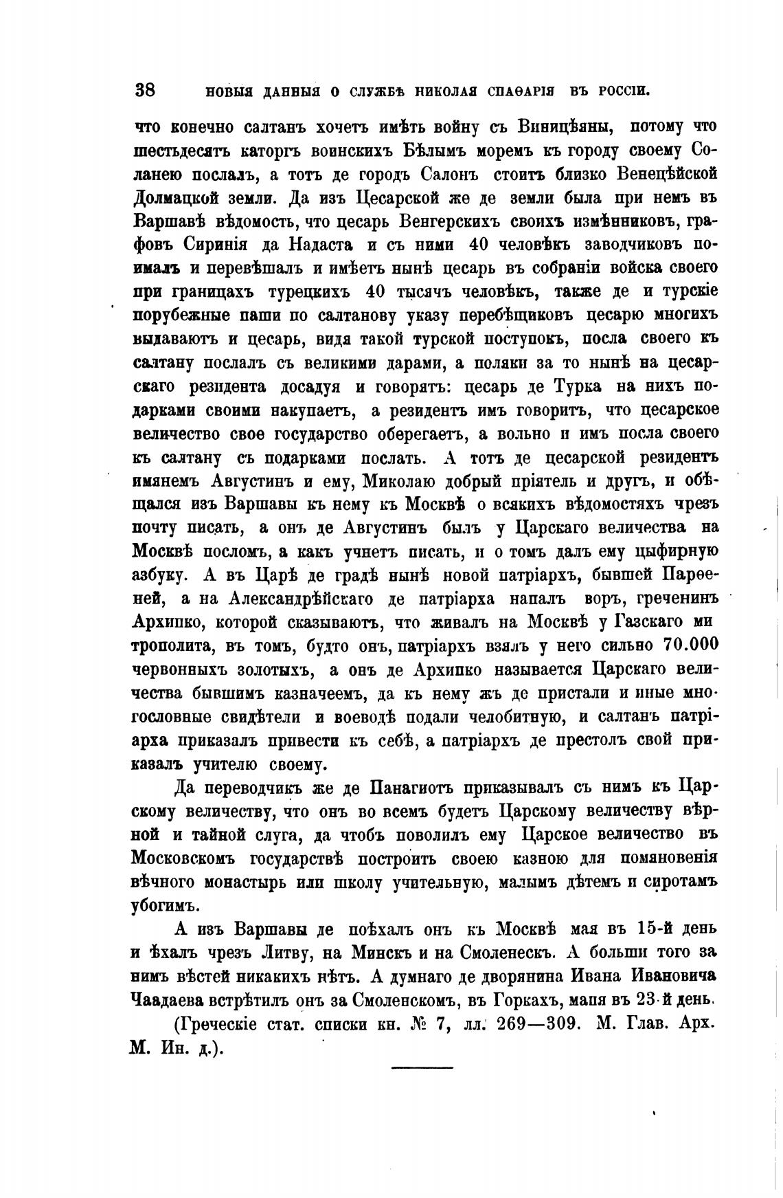 Да переводчикъ же де Панагиоть приказывалъ съ нимъ кь Цар-