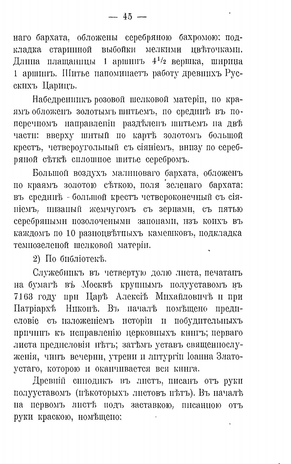 Длина плащаницы 1 аршипъ 41/2 верпл•а, шнрпџа