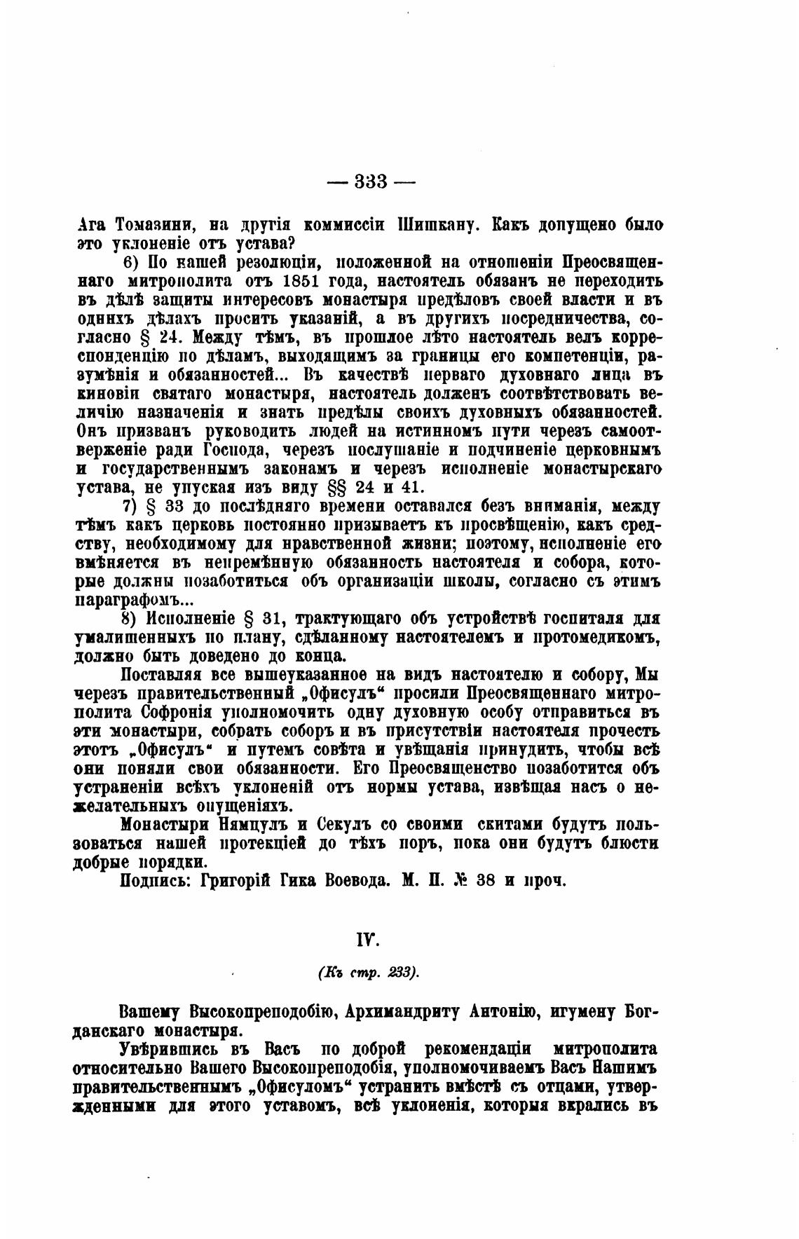 Подпись: Гика Воевода. М. П. 38 и проч.