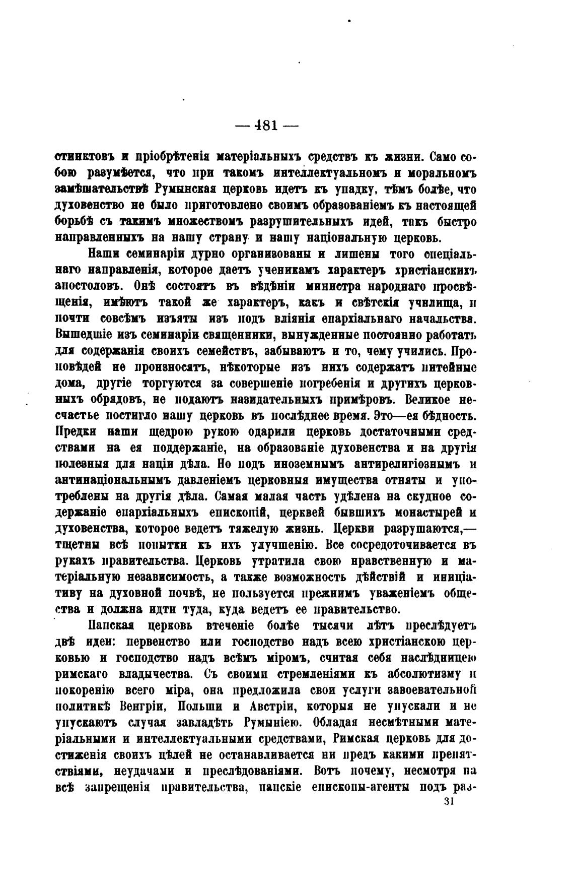 Румынская церковь идеть кь упадку, тьмъ болте, что