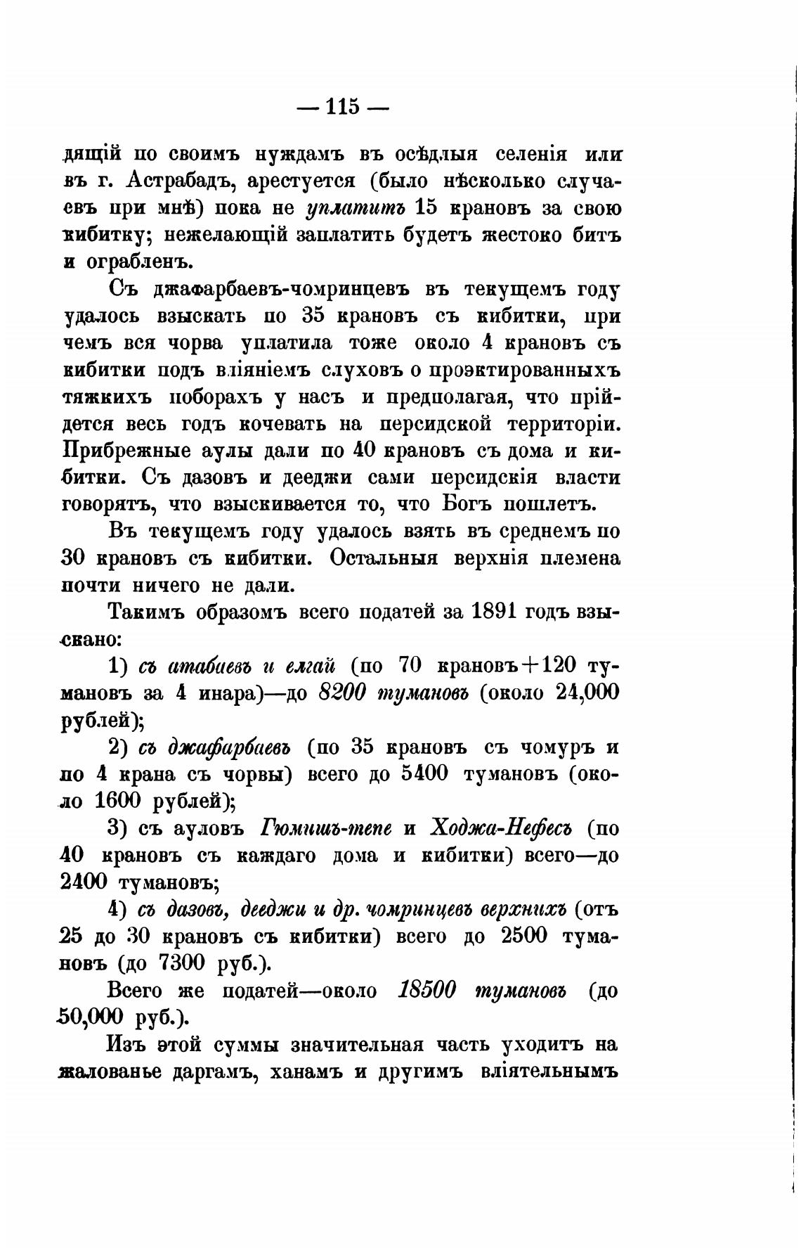 25 до 30 крановъ съ кибитки) всего до 2500 тума-
