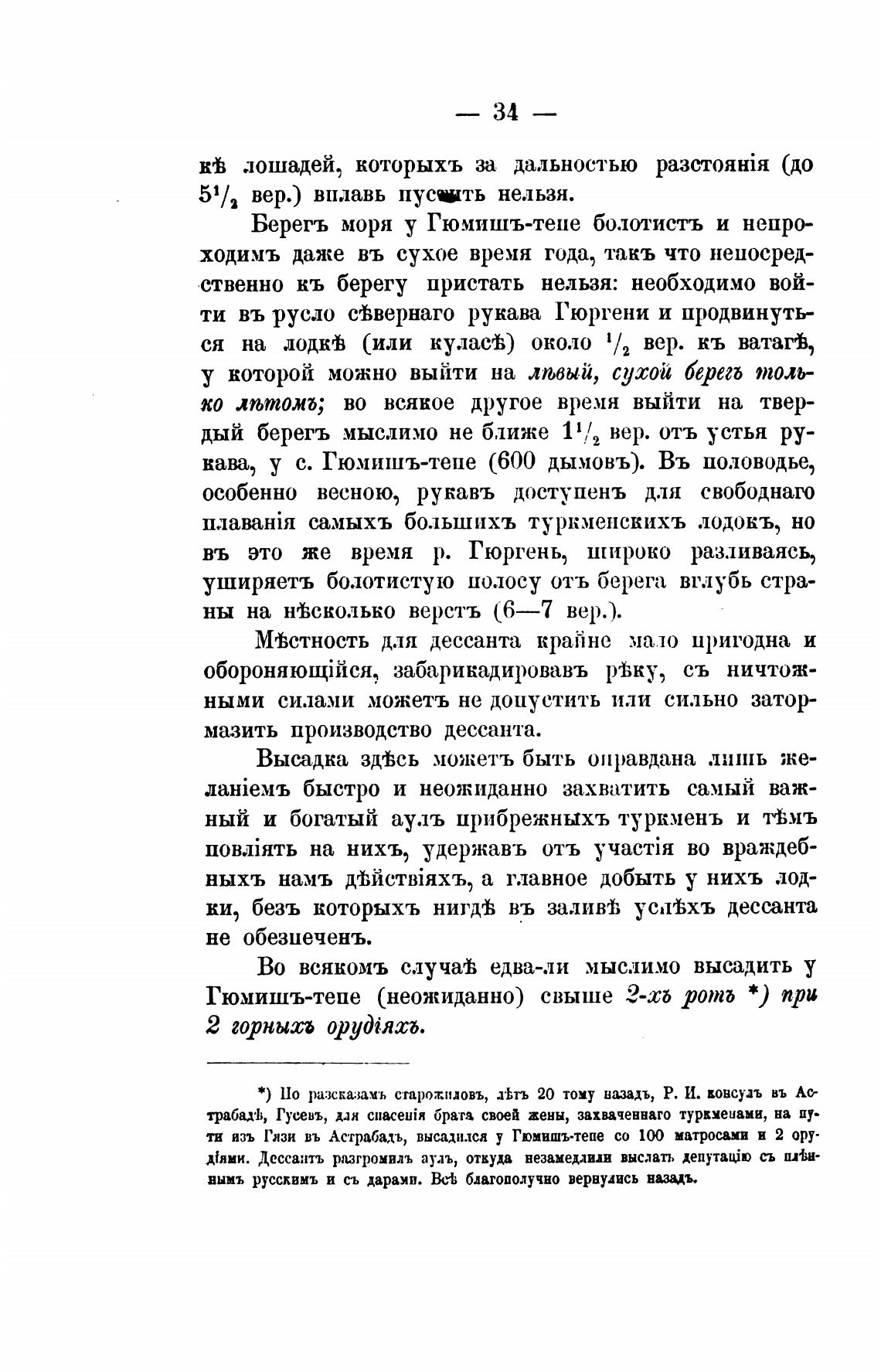 ти изъ Гязи въ Астрабад•ь, высадился у Гюмишъ-тепе со 100 матросами н 2 ору-