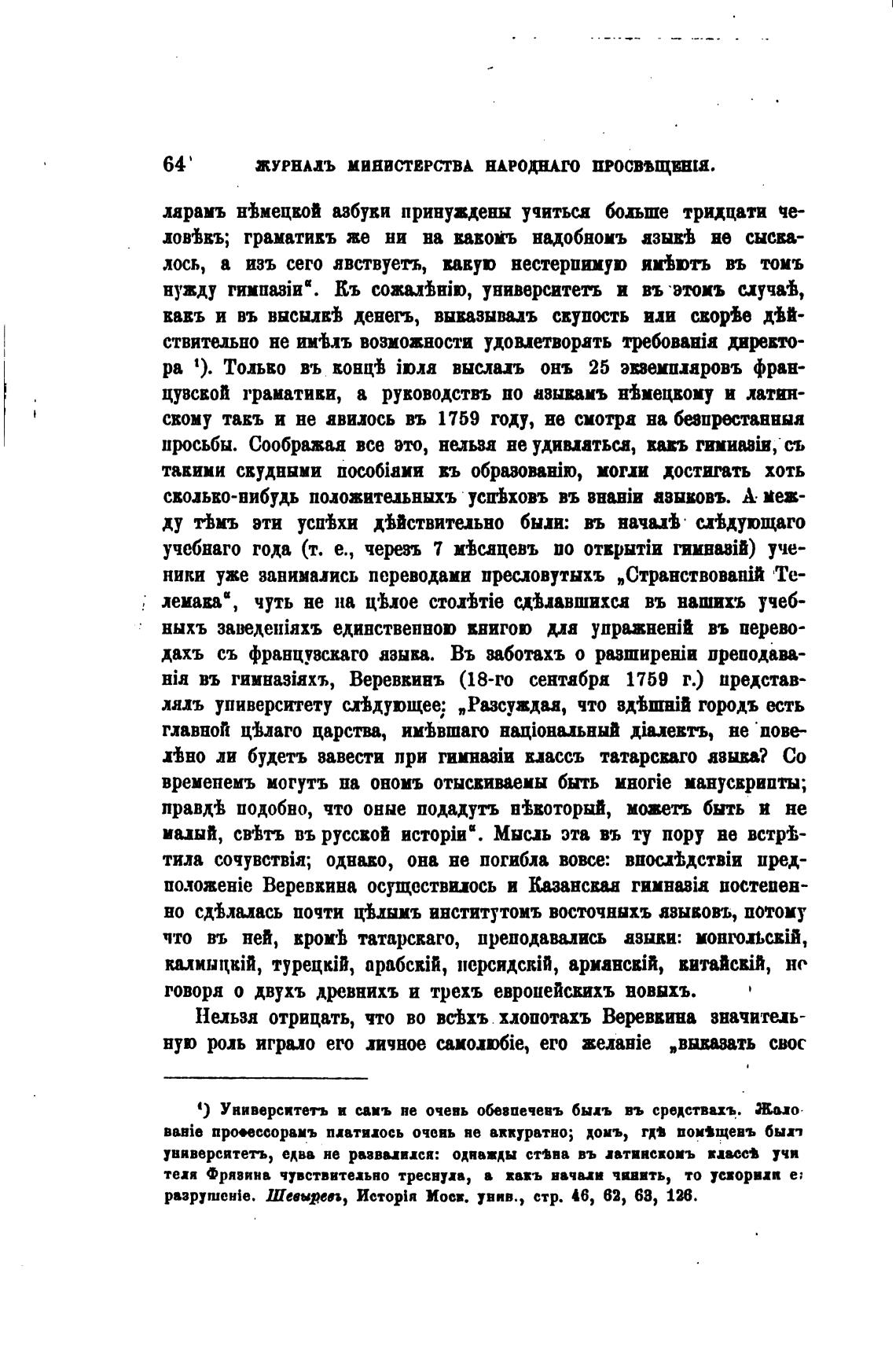 Hia въ гимназТъ, Веревкинъ (18-го сентабря 1759 г.) представ-