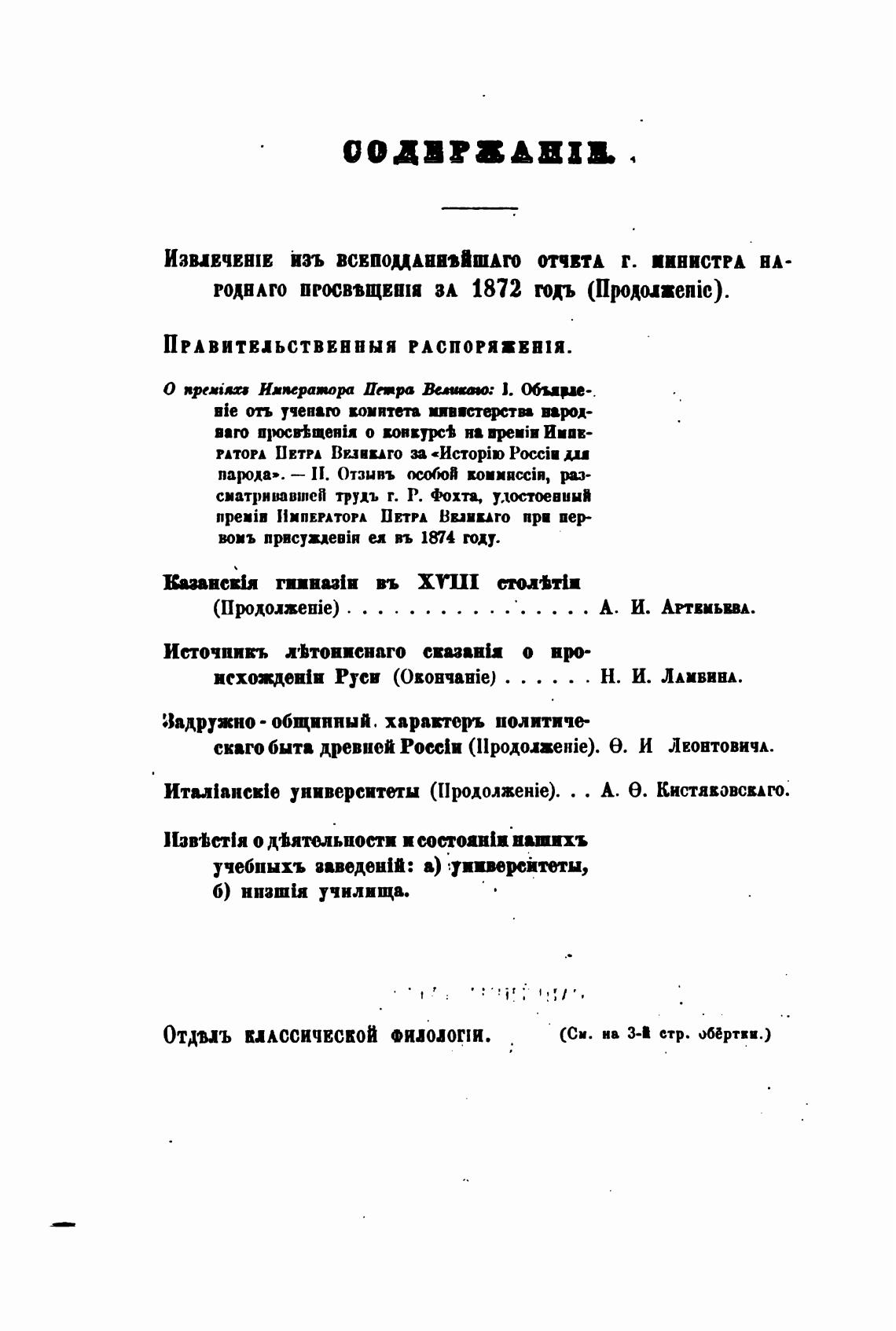 Отдмъ КЛАССИЧЕСКОЙ Фидојог:и.