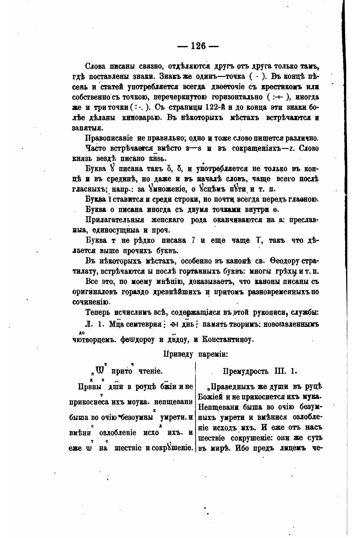 Теперь исчислимъ всђ, содержащјас.а вытой рукописи, службы: