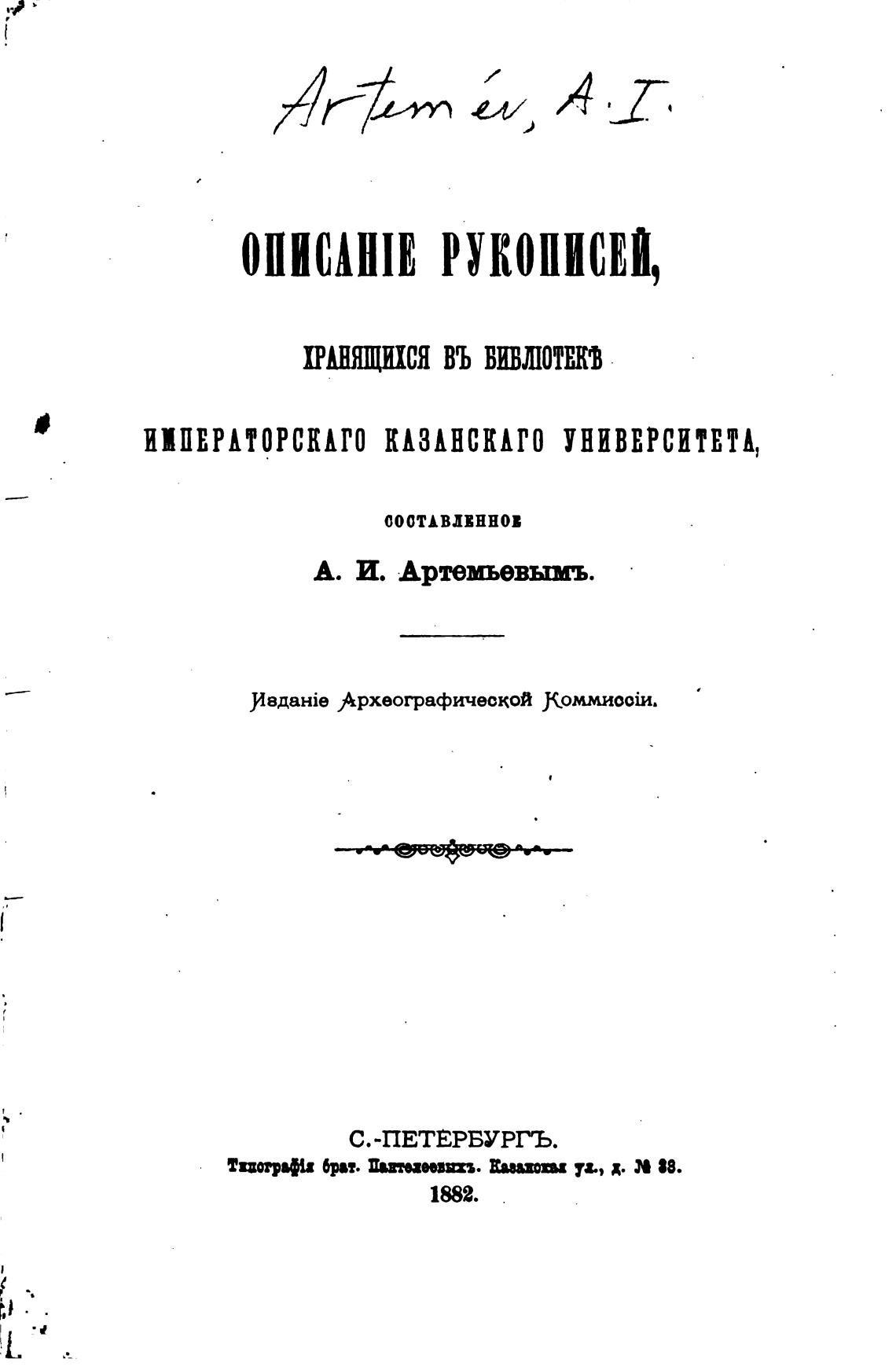 А. И. Артемьевымъ.