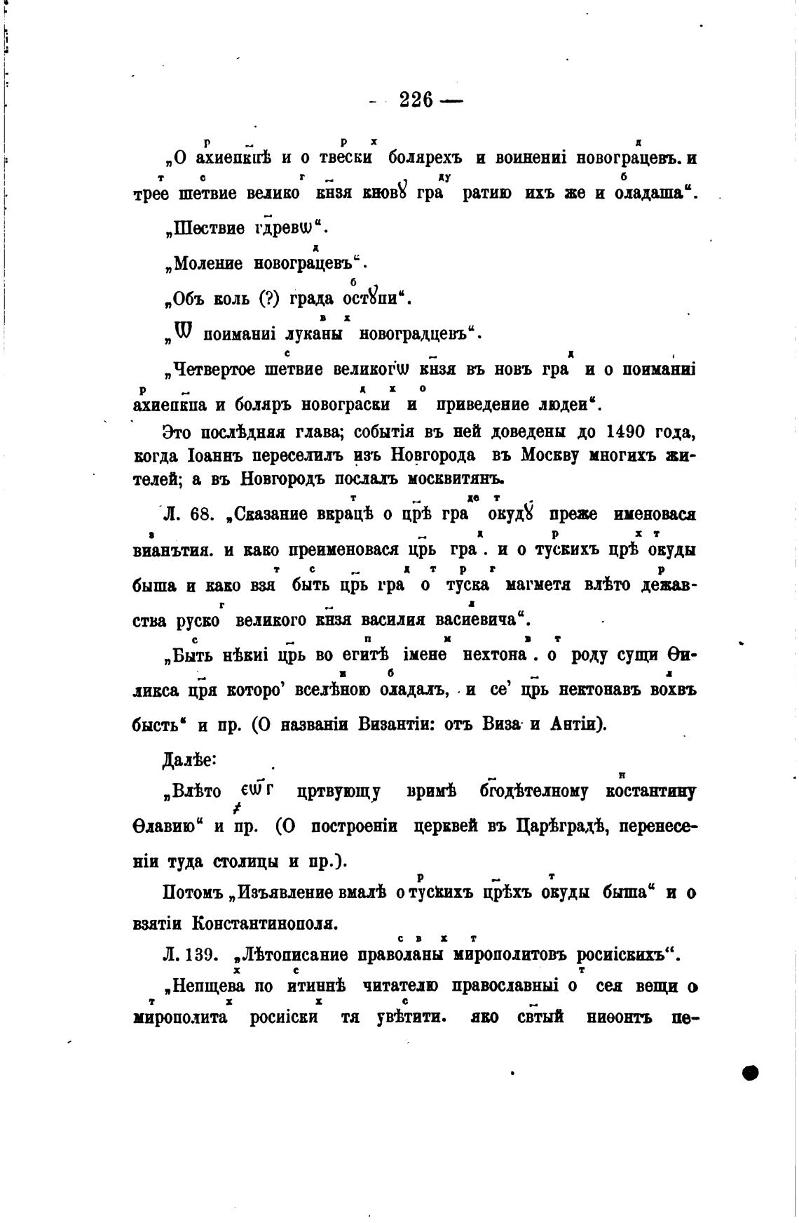 Л. 139. „Мтописание праволаны мирополитовъ