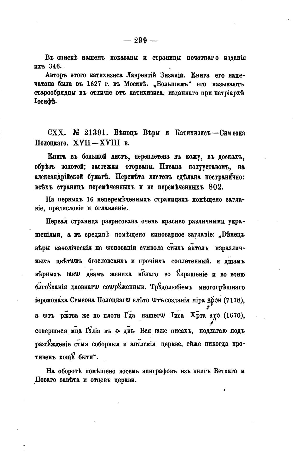 СХХ. 21391. ВФнецъ Тры и Катихизисъ—Сииеона