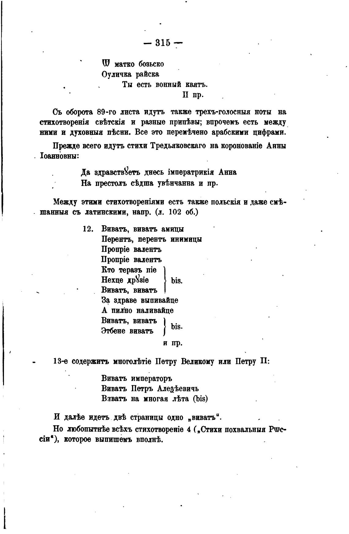 Прежде всего идуть стихи Тредьавовскаго на R0PH0BaHie Анны