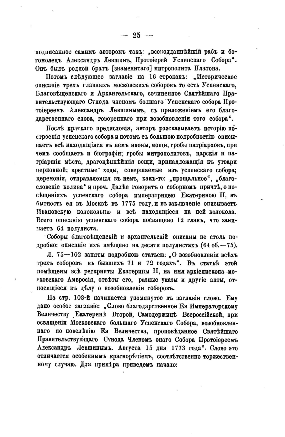 Александръ Левшинымъ. Августа 15 дня 1773 года“. Слово это