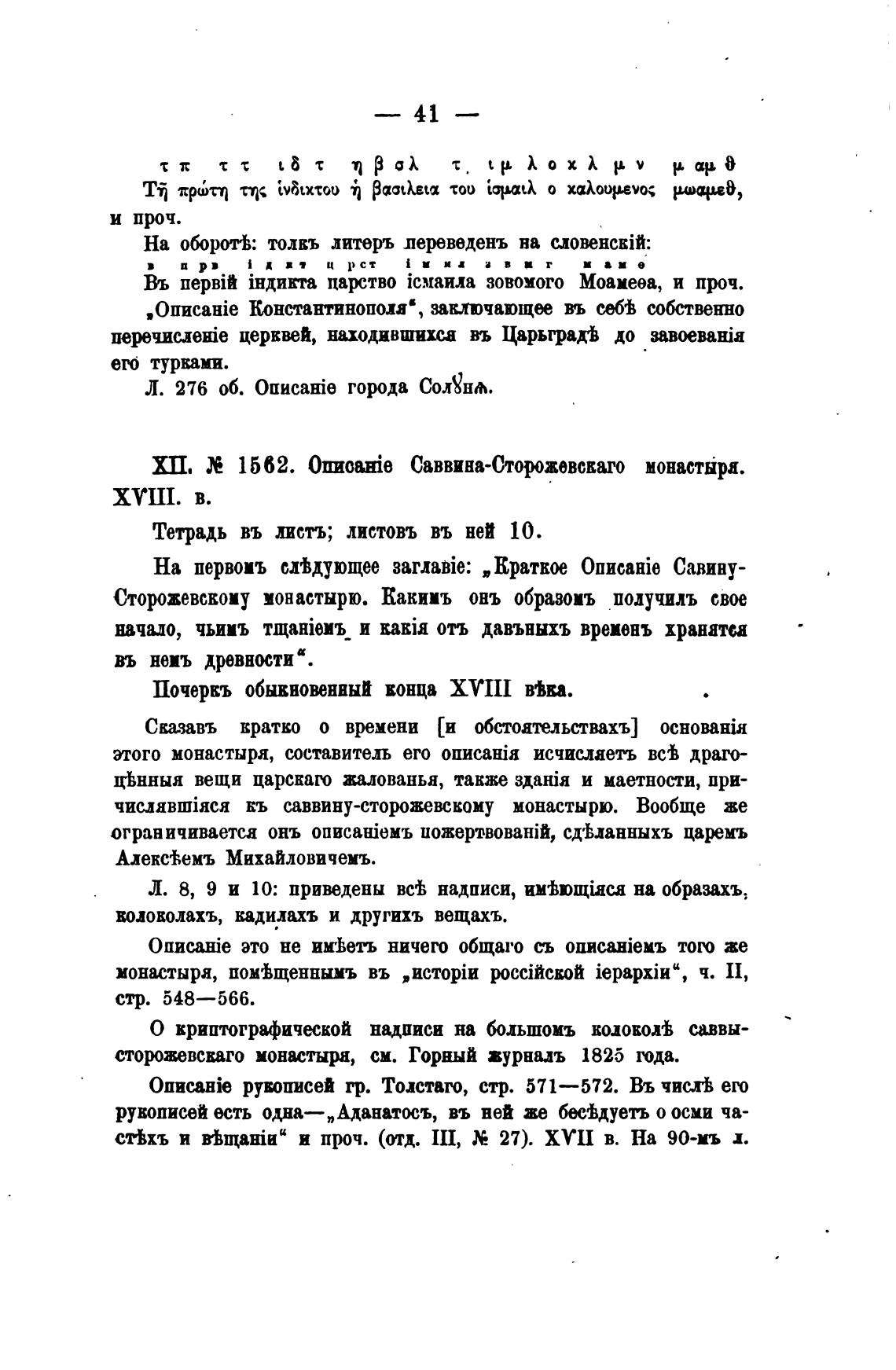 XIL 1562. 0nnaEie Саввина-Сторожевскаго монастыря.