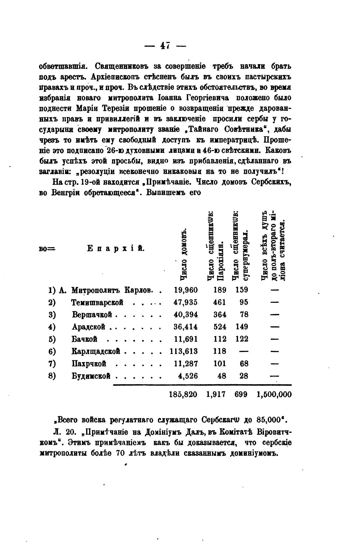 На стр. 19-ой находится , npwiwuie. Число домовъ Сербсвихъ,