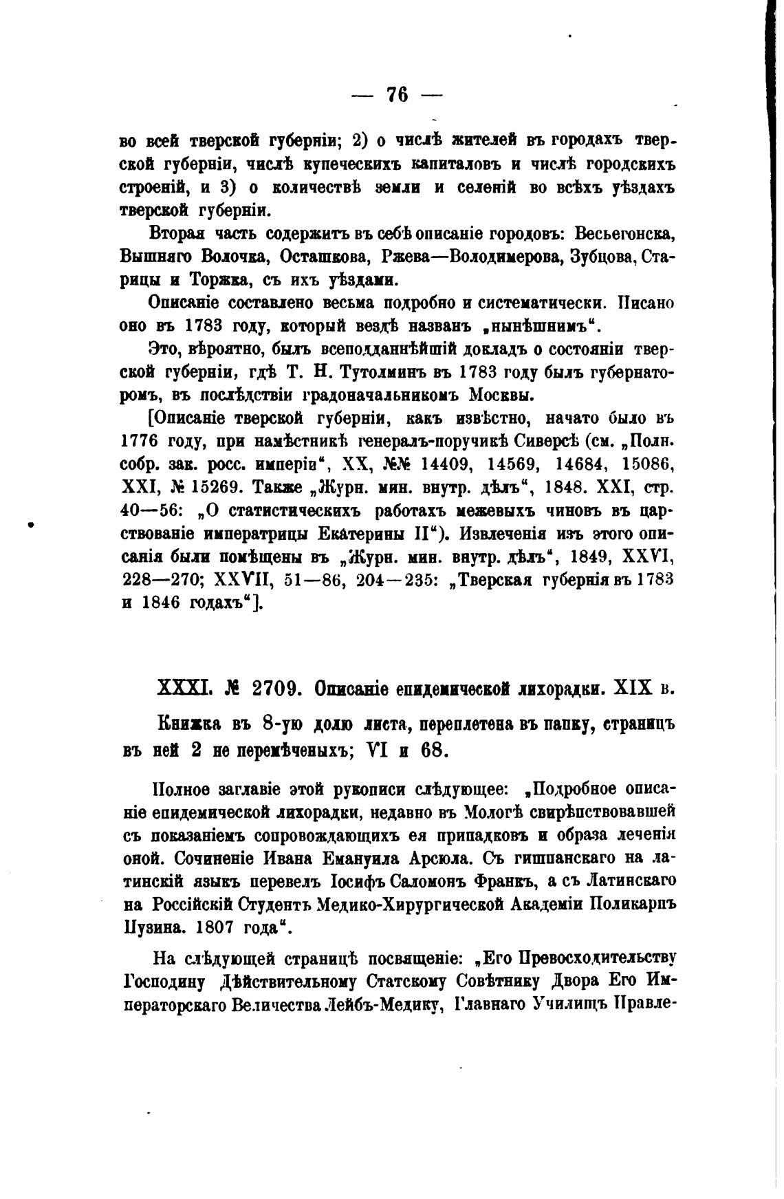 XXXI. 2709. 0IHcazie епидеиической лихорадки. XIX в.