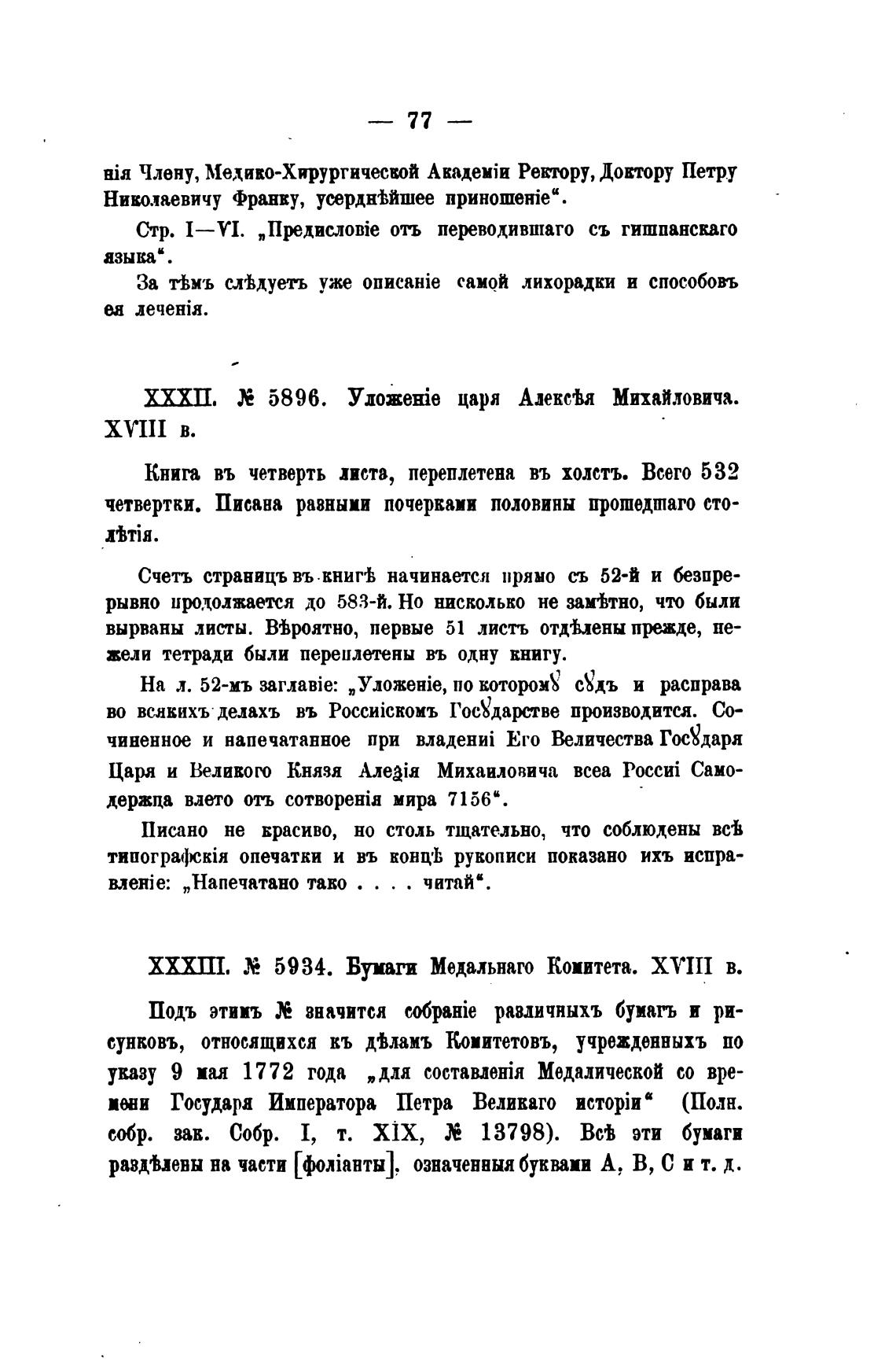 ХХХШ. 5934. Бумаги Медальнаго Комитета. ХУIП в.