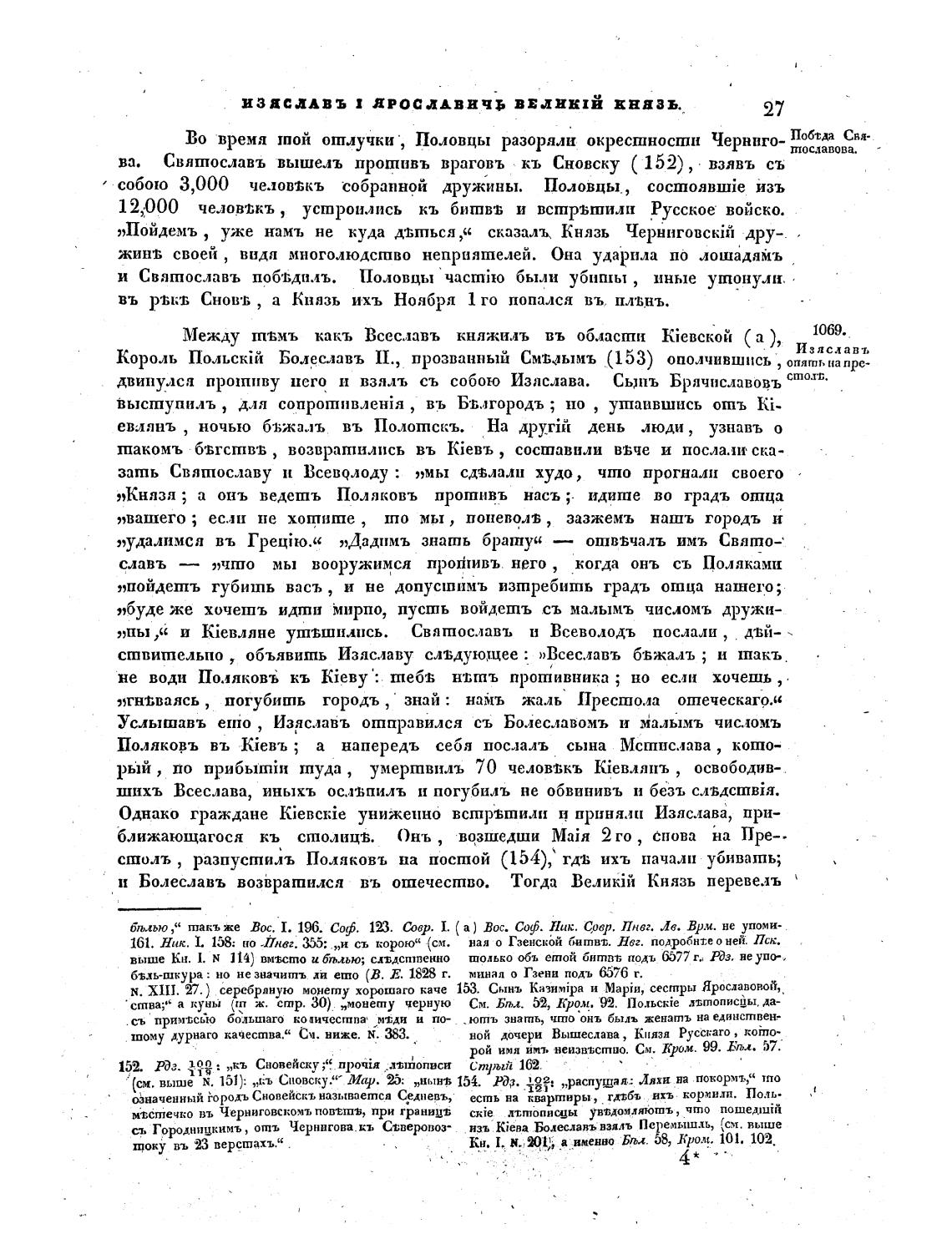 ва. Свяшославъ вышелъ противь враговъ кт, Сновску ( 152) , • взявъ съ
