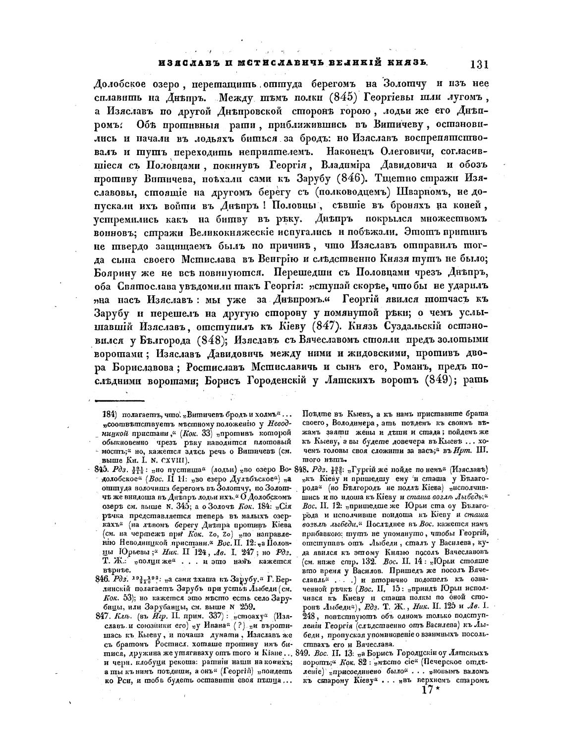 шавцЙЙ Изяславъ, отступилъ кь kieBY (847). Князь остано-