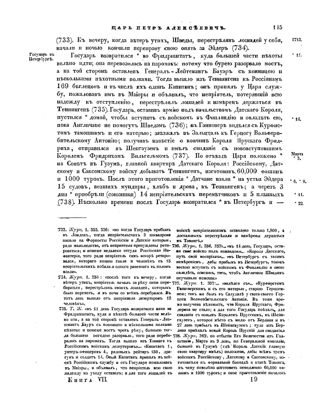 735. Т. Ж. «въ 11 день Государь озвратизса ,югмьа ме стало; а дан того Гчдарь поыа.т•ј, для